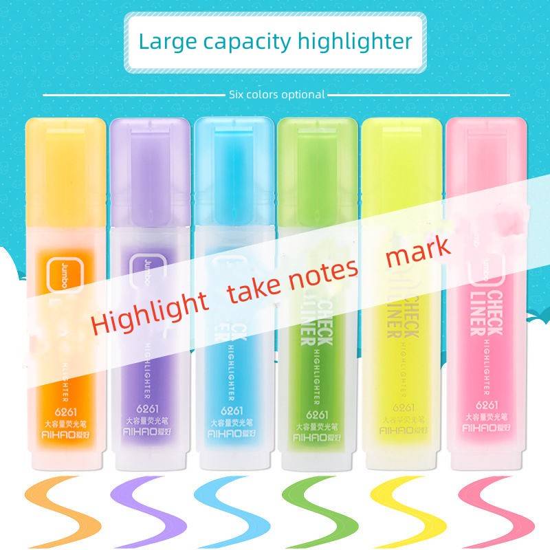 6 Color Colorful highlighters fluorescent highlighting marker pen stationary highlighter