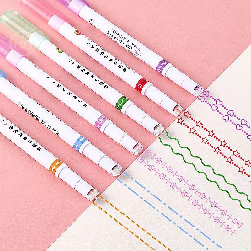 6 Colors Curve Multi-Shaped Outline Pen Fluorescent Pen Hand Account Pen school office supplies