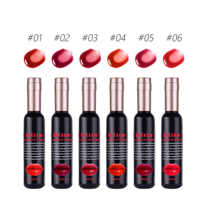 6 Colors Red Wine Bottle Lipstick Liquid Lip Glaze Moisturizing Easy To Color Non-stick Cup Sexy Red Lip Tint Lip Gloss