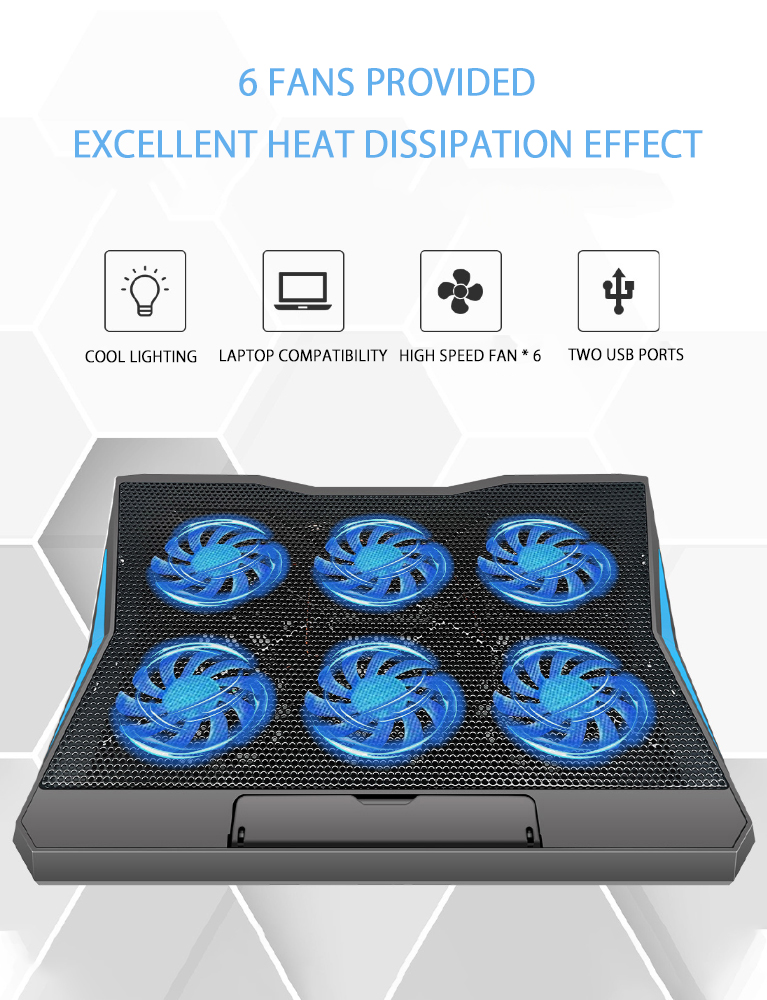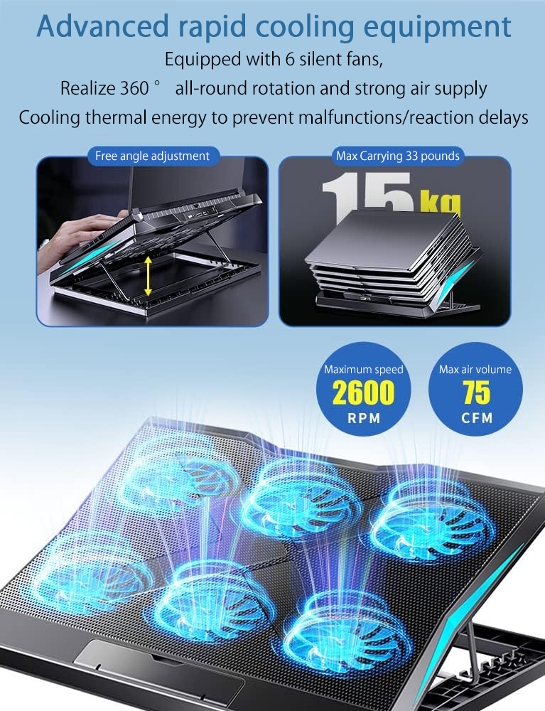 Laptops Stand Cooler Base 6 Fan Gaming Keyboard Fan Cooling Pad for Tablet Phone