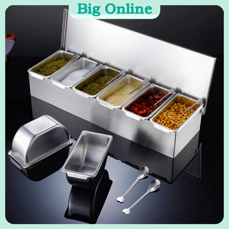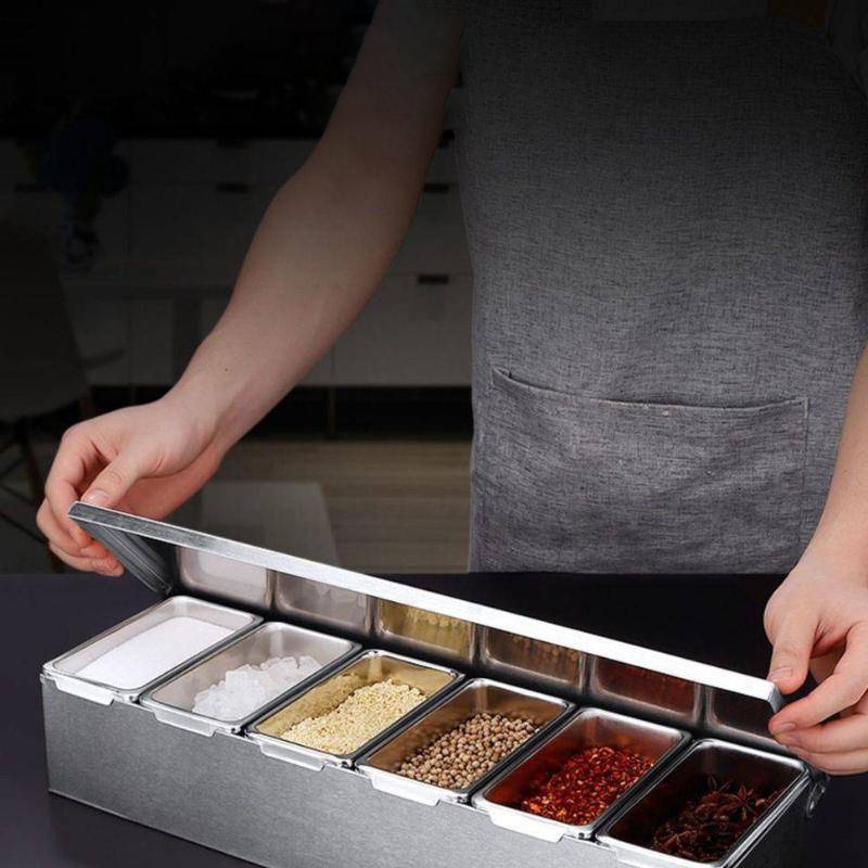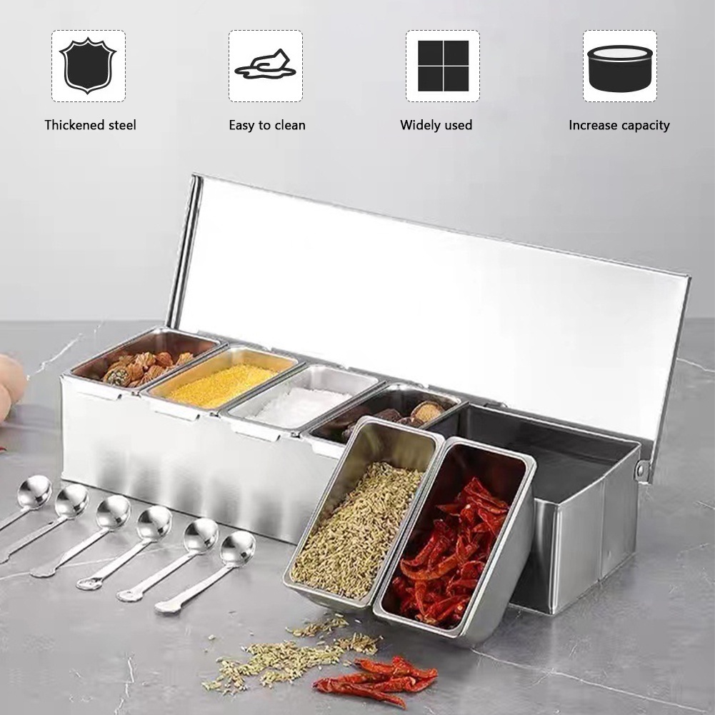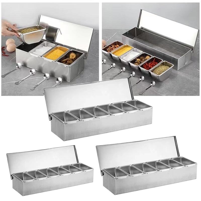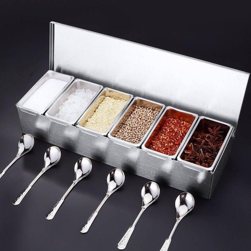 6 Grids Stainless Steel Seasoning Box With Lid Restaurant Condiments Storage Box Spice Container Set