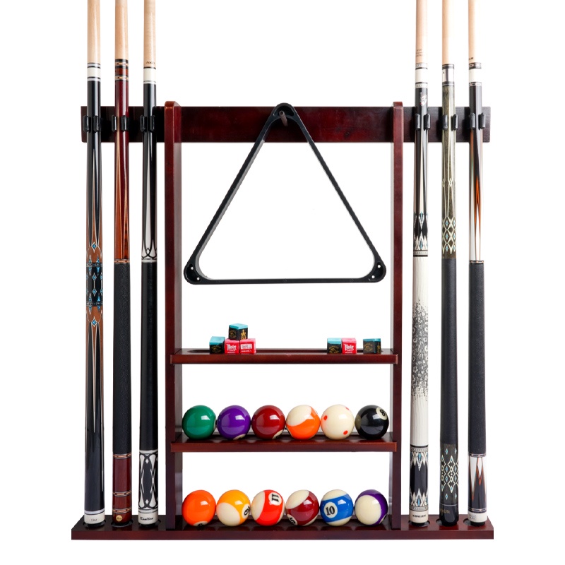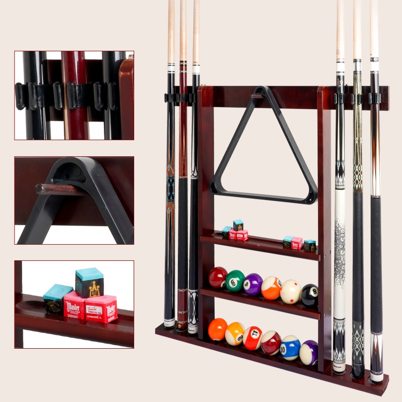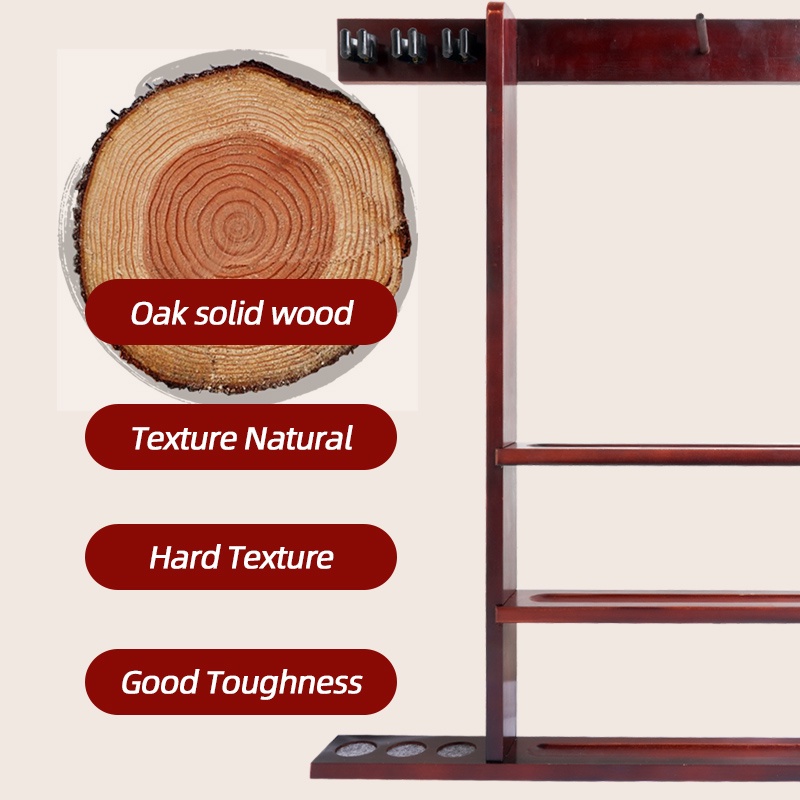 6 Holes Billiard Cue Bracket Durable Pool Cue Rack Stick Display Solid Wood Rack Floor Standing Billiards Stick Rack Accessories