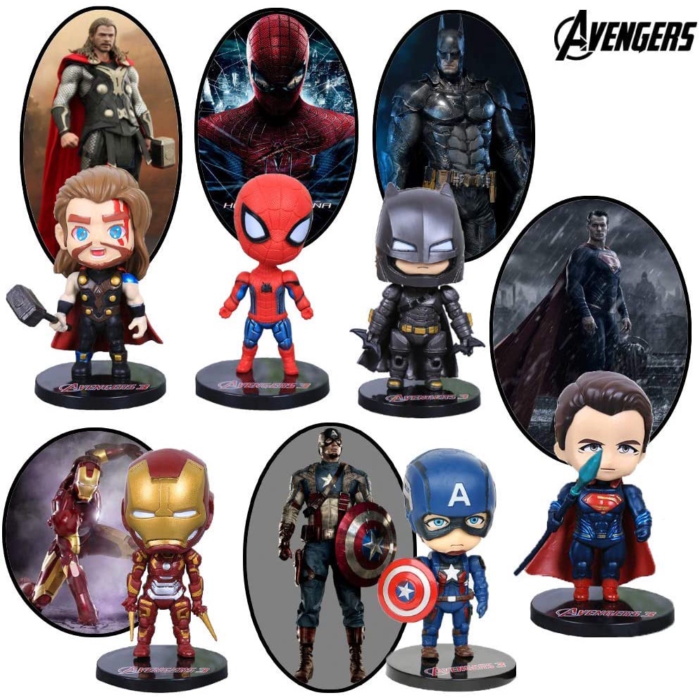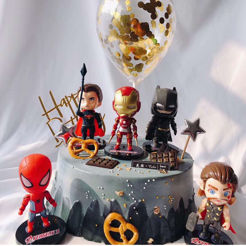 6 PCS/Set Iron Man Batman Spiderman Marvel The Avengers Justice league Alliance Doll Toys Movie Series Action Figure Model Cake Decoration