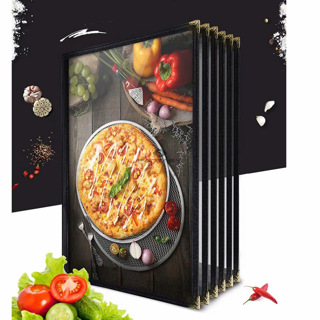 6 Pages 12 Faces A4 Transparent Menu Covers Restaurant Menu Folder Menu Book Price List Holder BLACK