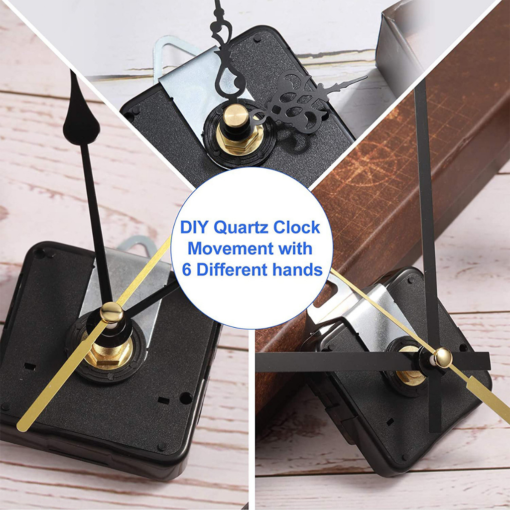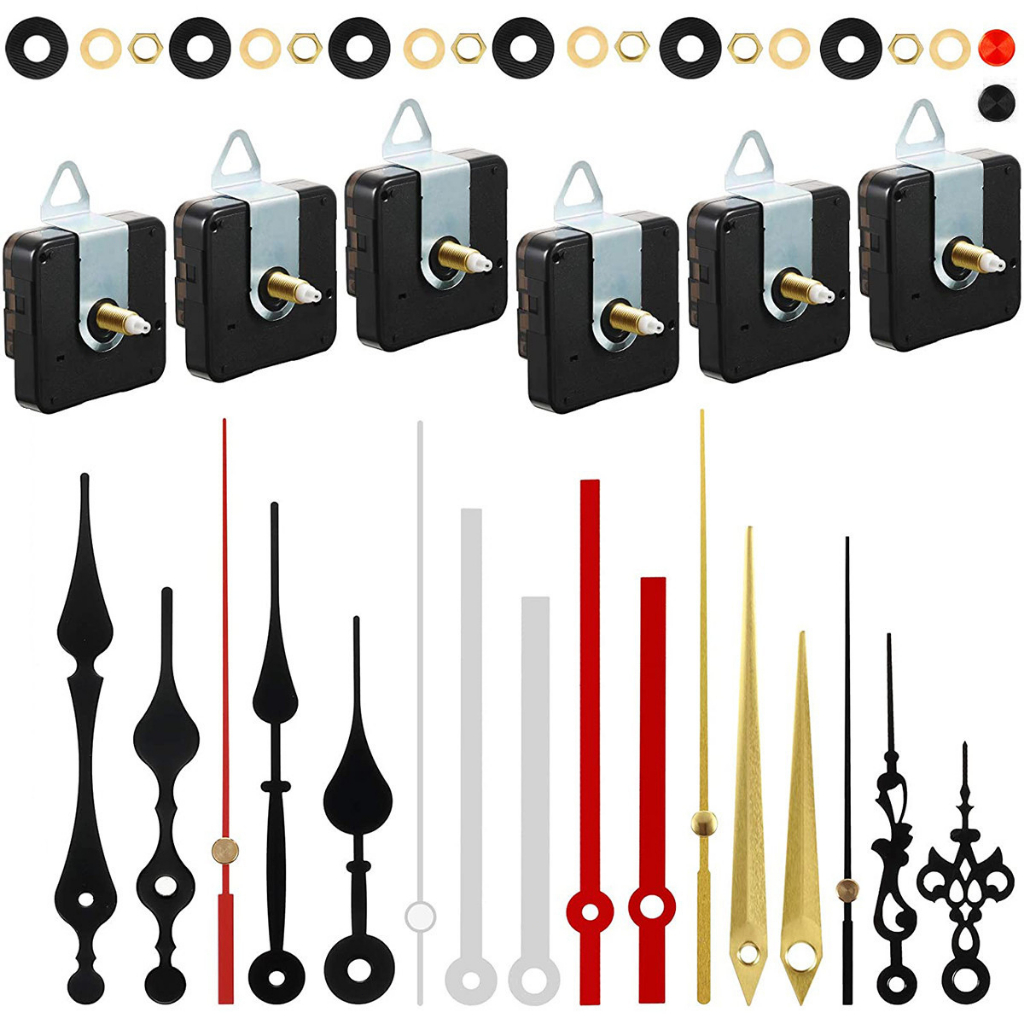 6 Pcs/Set Quartz Clock Movement Mechanism with 6 Pairs Different DIY Clock Hands Battery Kits
