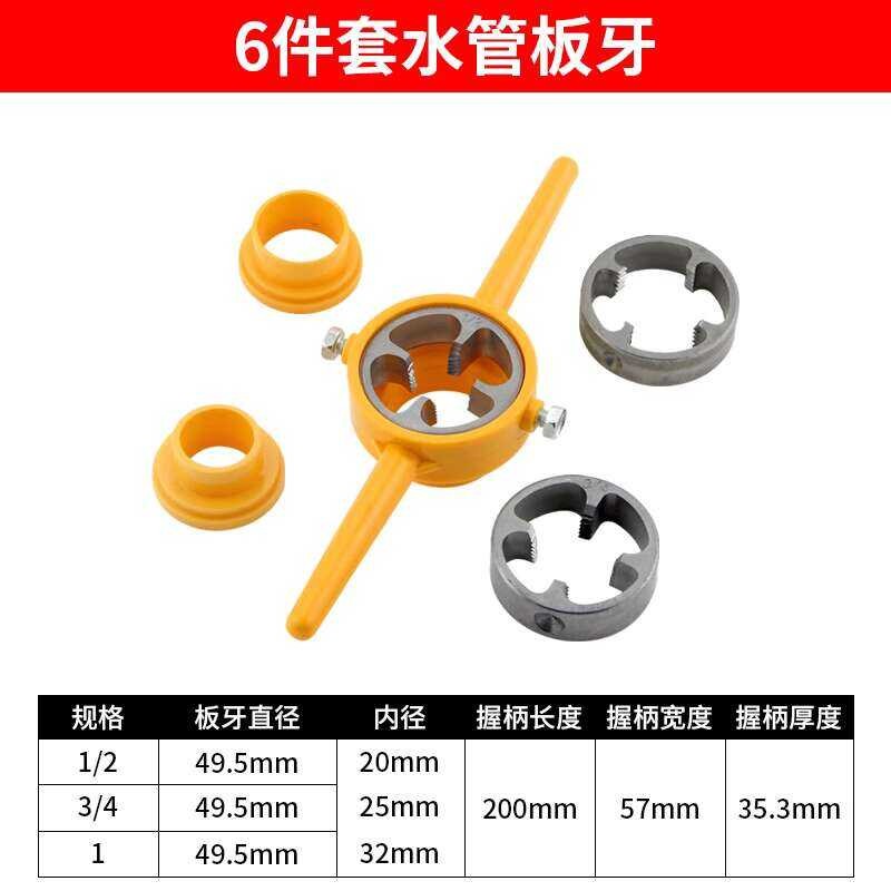 6-Piece Water PPR Plastic Pipe Threader Wrench Threading Machine Tool Set Round Die