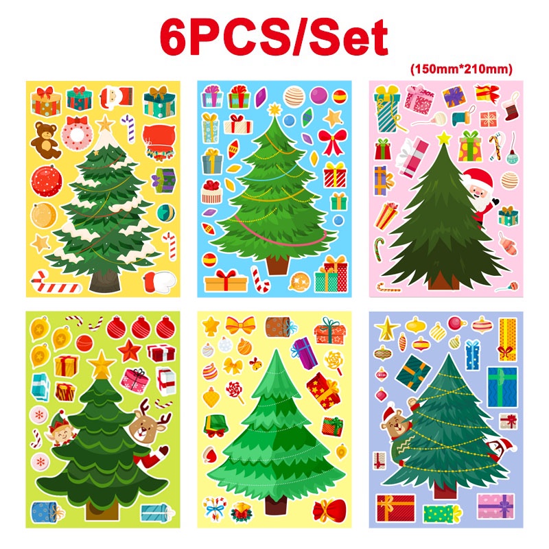 6 Pieces/pack Christmas Tree Puzzle Stickers for Children's Christmas Parties DIY Christmas Tree Stickers