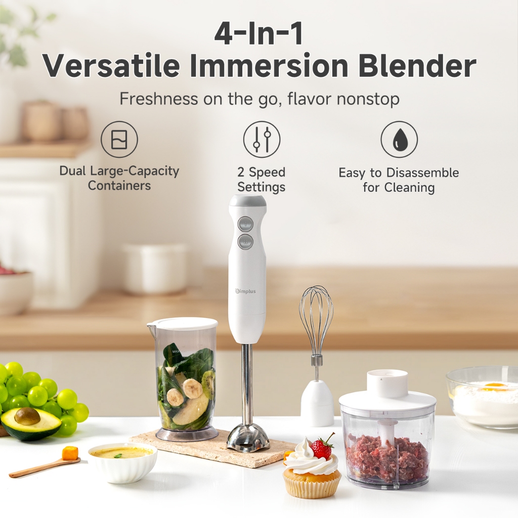 Simplus Handheld Immersion Blender – Electric Mixer for Baby Food, Juice, Nut Chopping