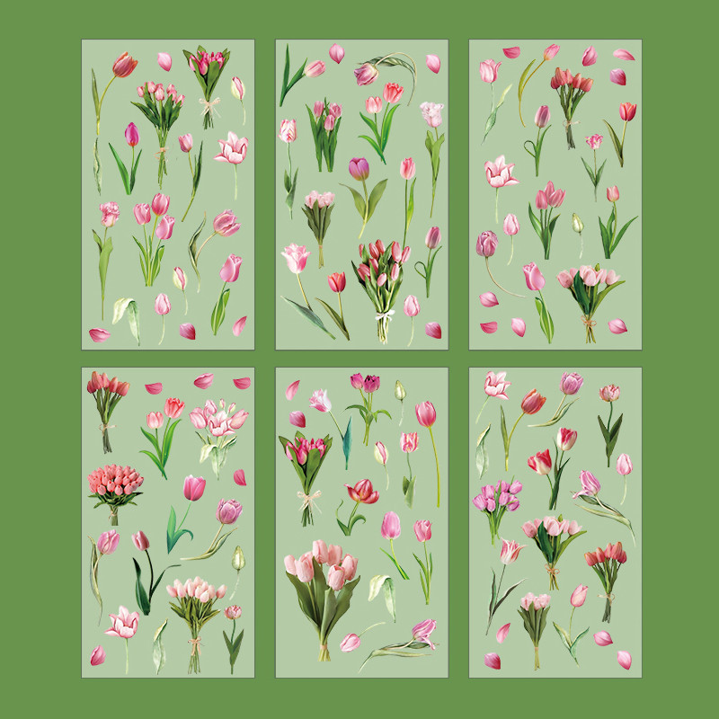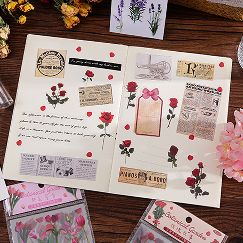 6 Sheets Classic Botanical Garden Series Flowers Stickers Scrapbook Deco DIY Material Flora Decals