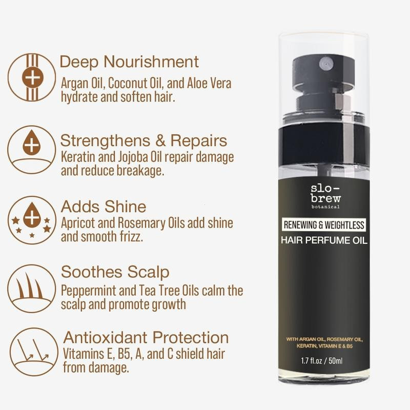 SLO-BREW Hair Perfume Spray - Bringing you the ultimate hair care experience,With alluring vanilla and rose scent,Gives you a radiant and weightless look