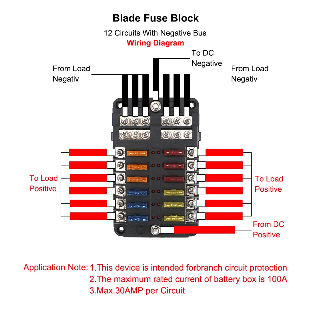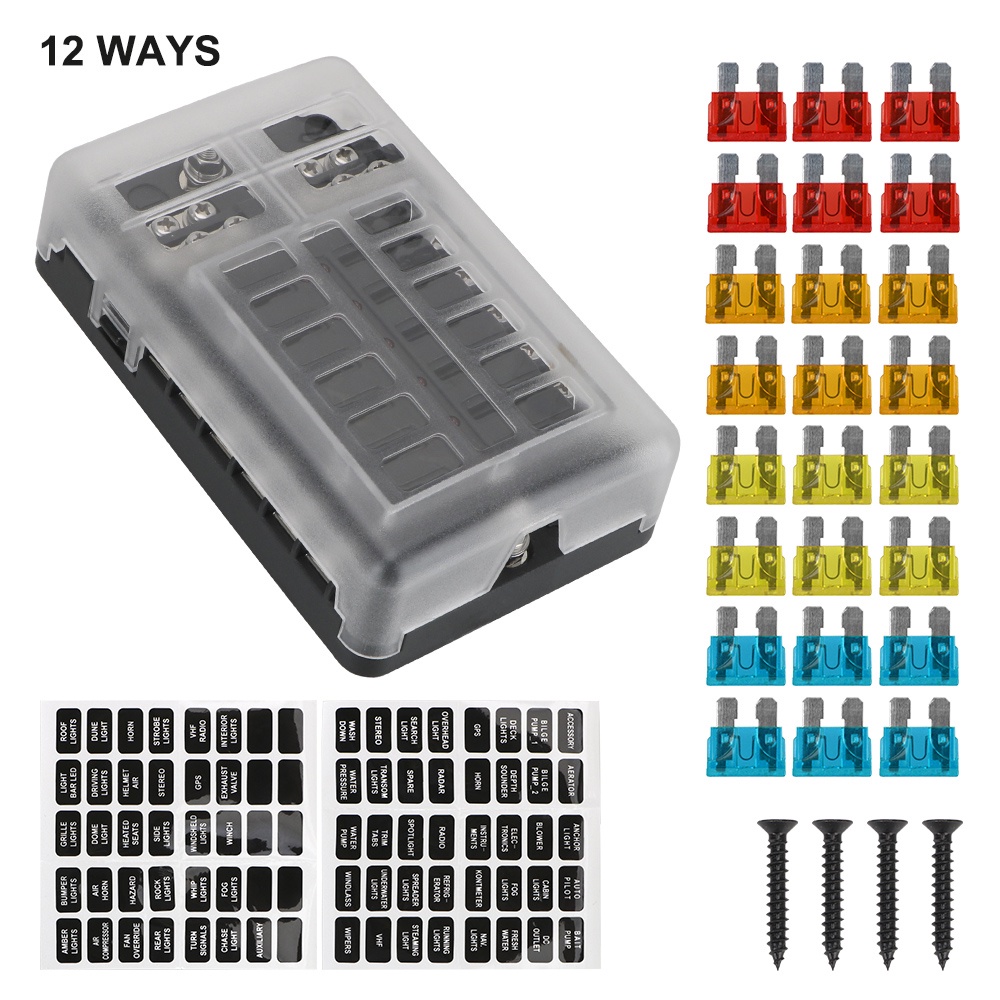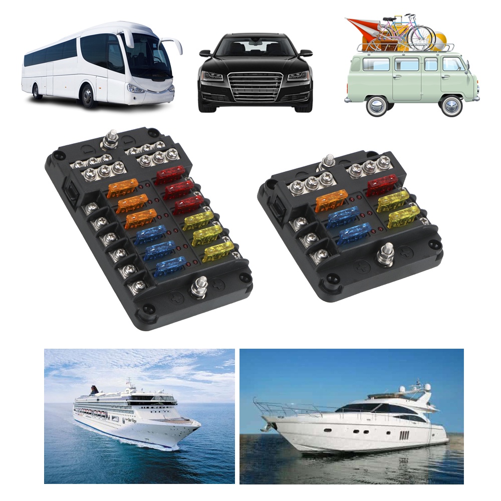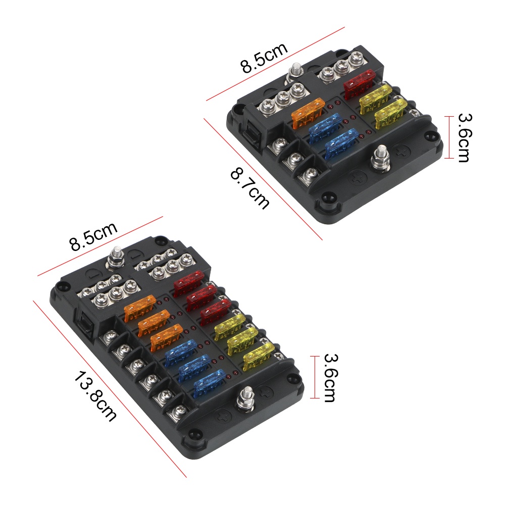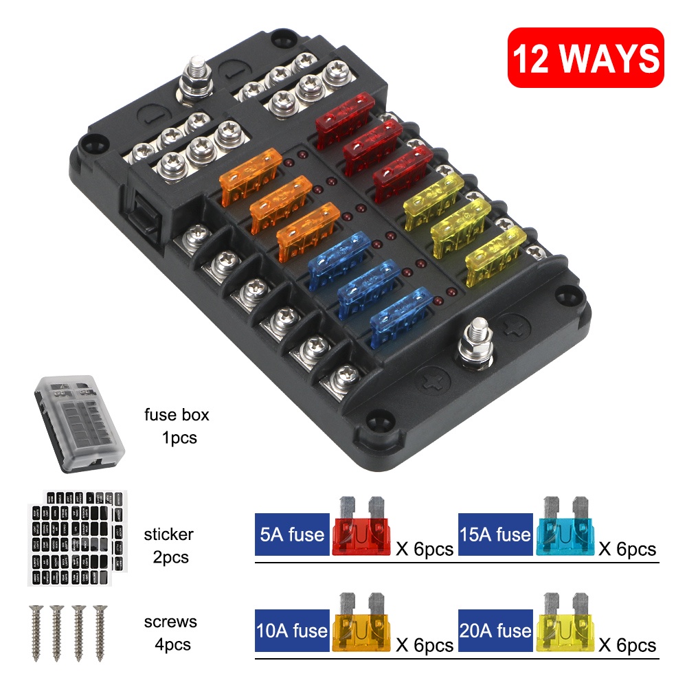 6 Way 32v Fuse Box Auto Car Fuse Holder Block Blade Fuse Block Waterproof Boat Fuse Panel with LED