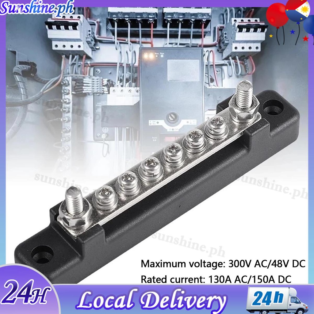 6 Way Bus Bar Terminal Block 300V AC/48V DC 130A AC/150A DC Power Distribution Block Bus Bar SHOPQJC2718
