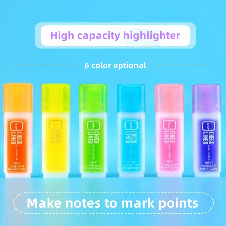 6 color highlighter pen set large capacity stationary marker highlighter writing school supplies