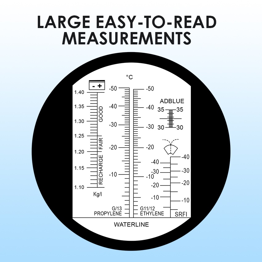6-in-1 Automotive Car Refractometer ATC for Adblue/ Antifreeze/ Battery Acid/ Windshield Fluid, Propylene Ethylene Glycol Cleaning Coolant Charge Specific Gravity Density Condition