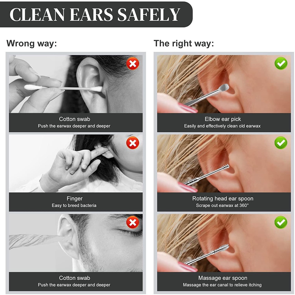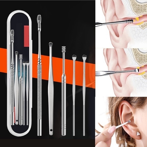 6 in 1 Portable Ear Cleaner Set, Earpick Ear Wax Remover Ear Curette Spiral Ear Spoon Clean Earpick