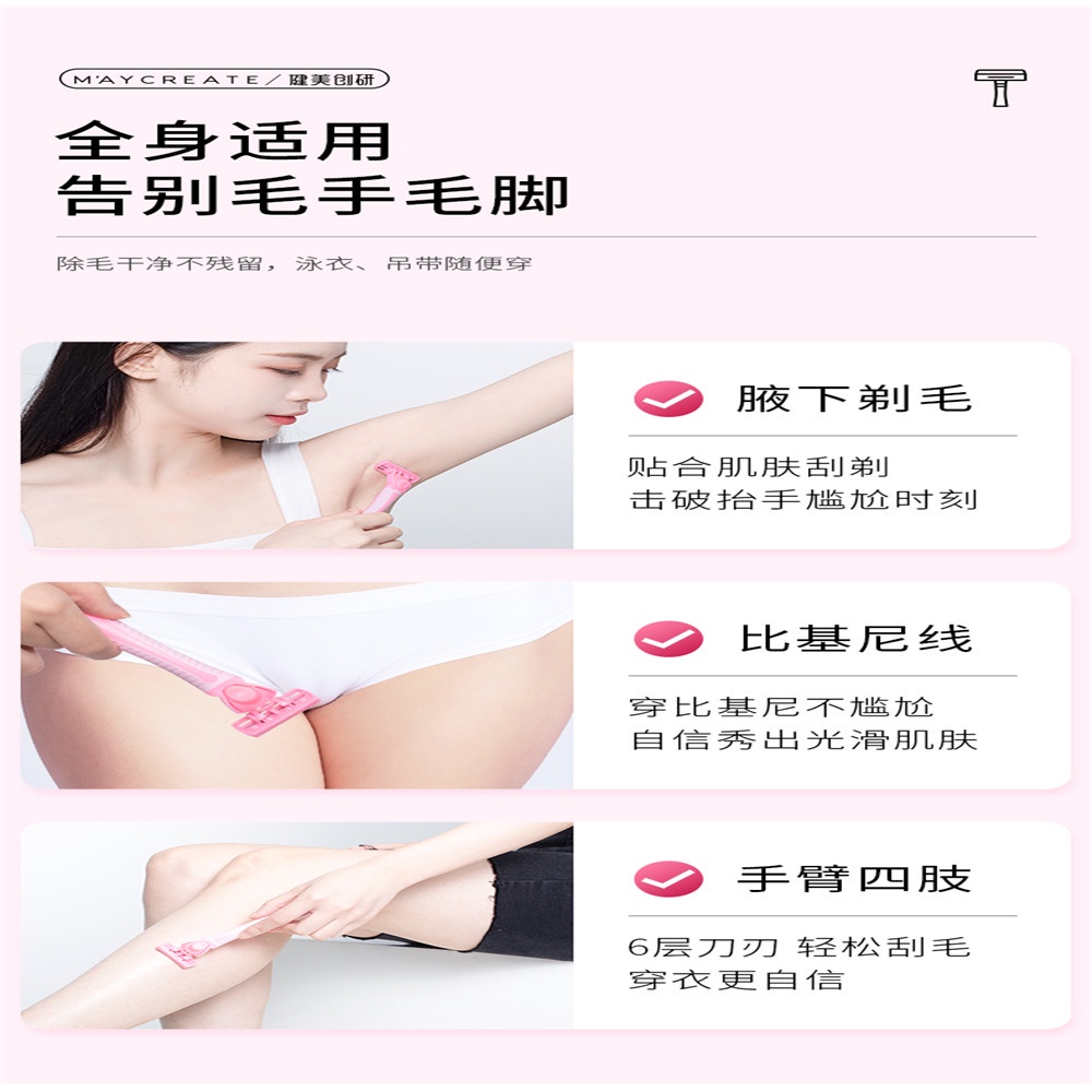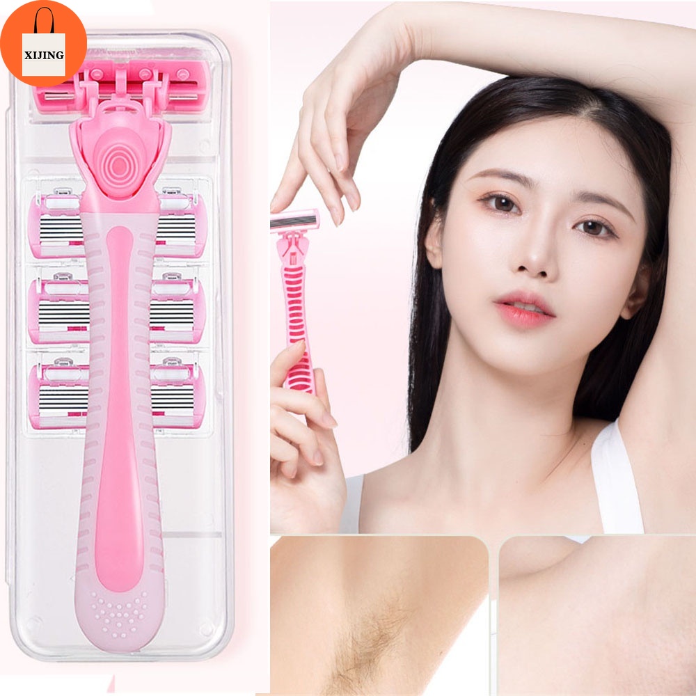 6-layer Manual Shaving Razor Set for Men Women Shave Legs Armpit Hair Shaver with 3 Replacement Heads