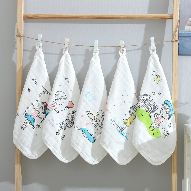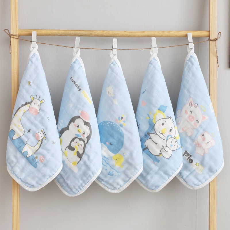 6 layers soft and delicate baby handkerchief high absorption hand bath towel cotton gauze sapu tangan ( RANDOM DESIGN )