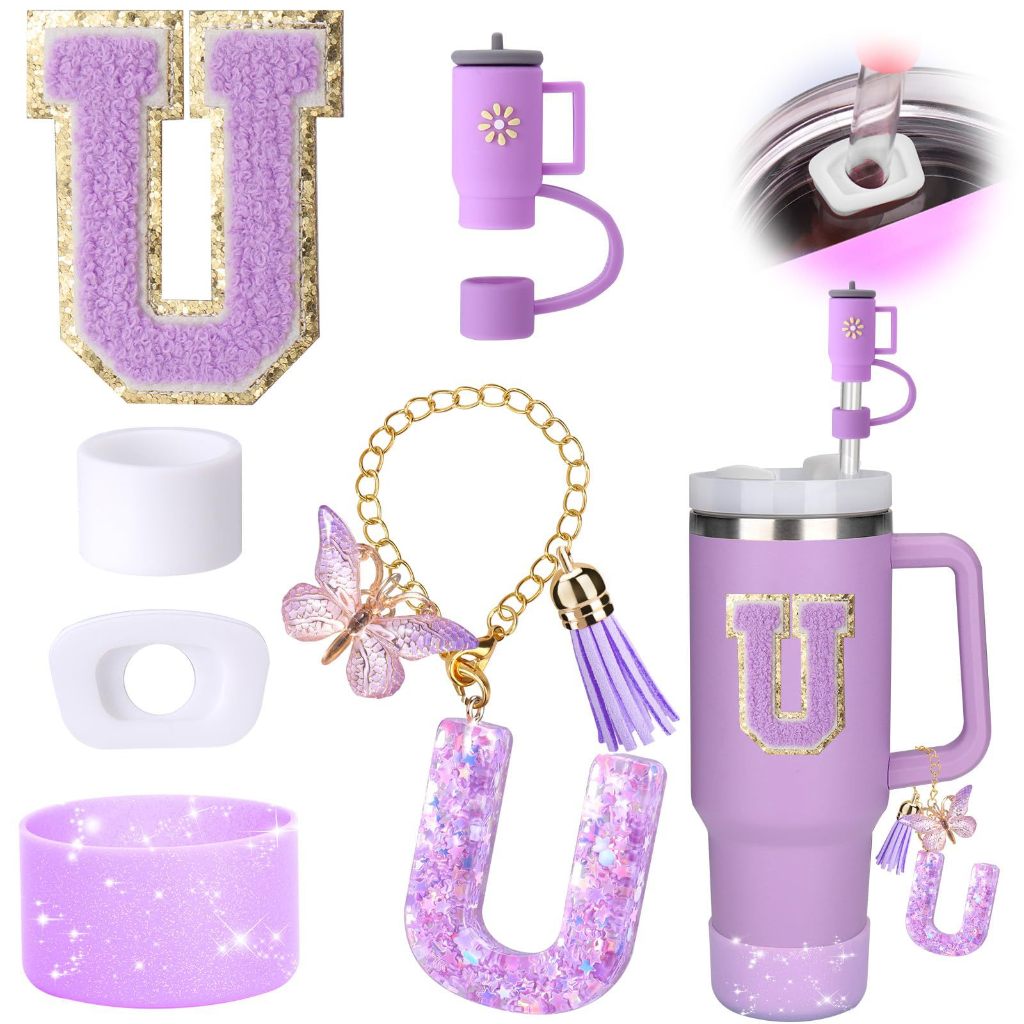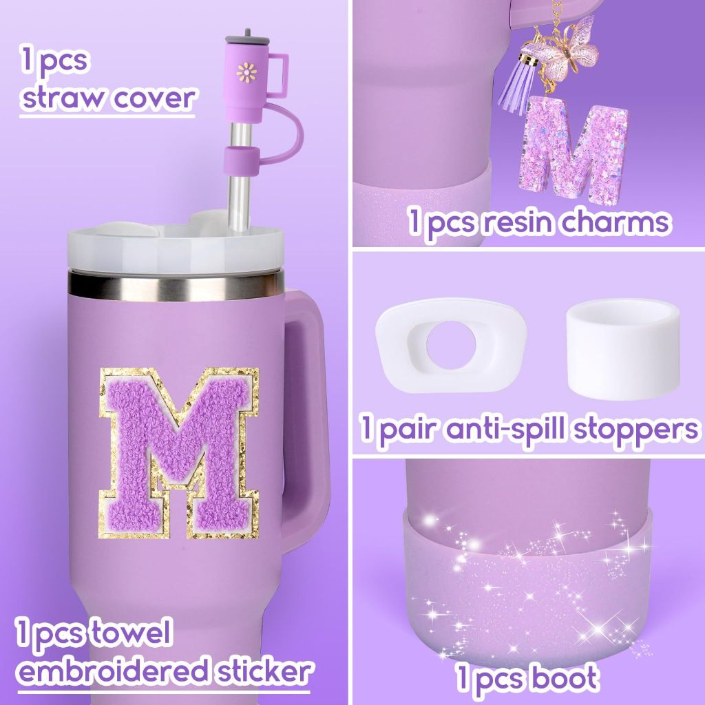6 pcs Stanley Cup with diamond inlaid letters Bottle chain cup with soft ceramic handle Alphabet English keychain