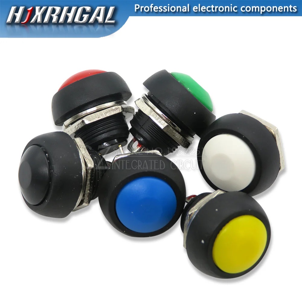 6-piece mini 12mm waterproof instant on/off button circular switch PBS-33B kit