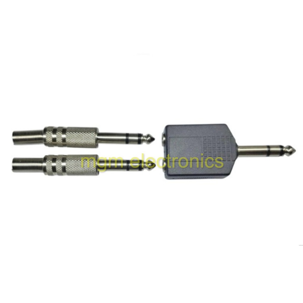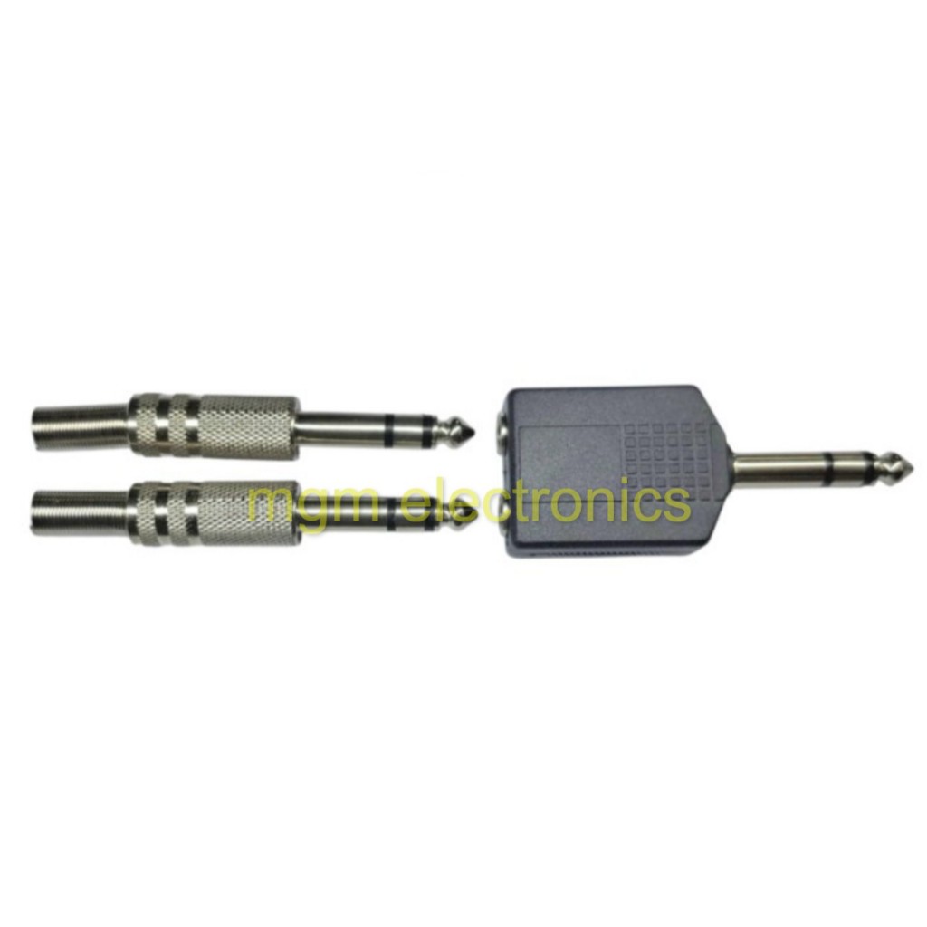 2PCs/LOT 6.35MM PL Mono/Stereo MALE PLUG TO 2 PL Mono/Stereo FEMALE JACK ADAPTOR SPLITTER