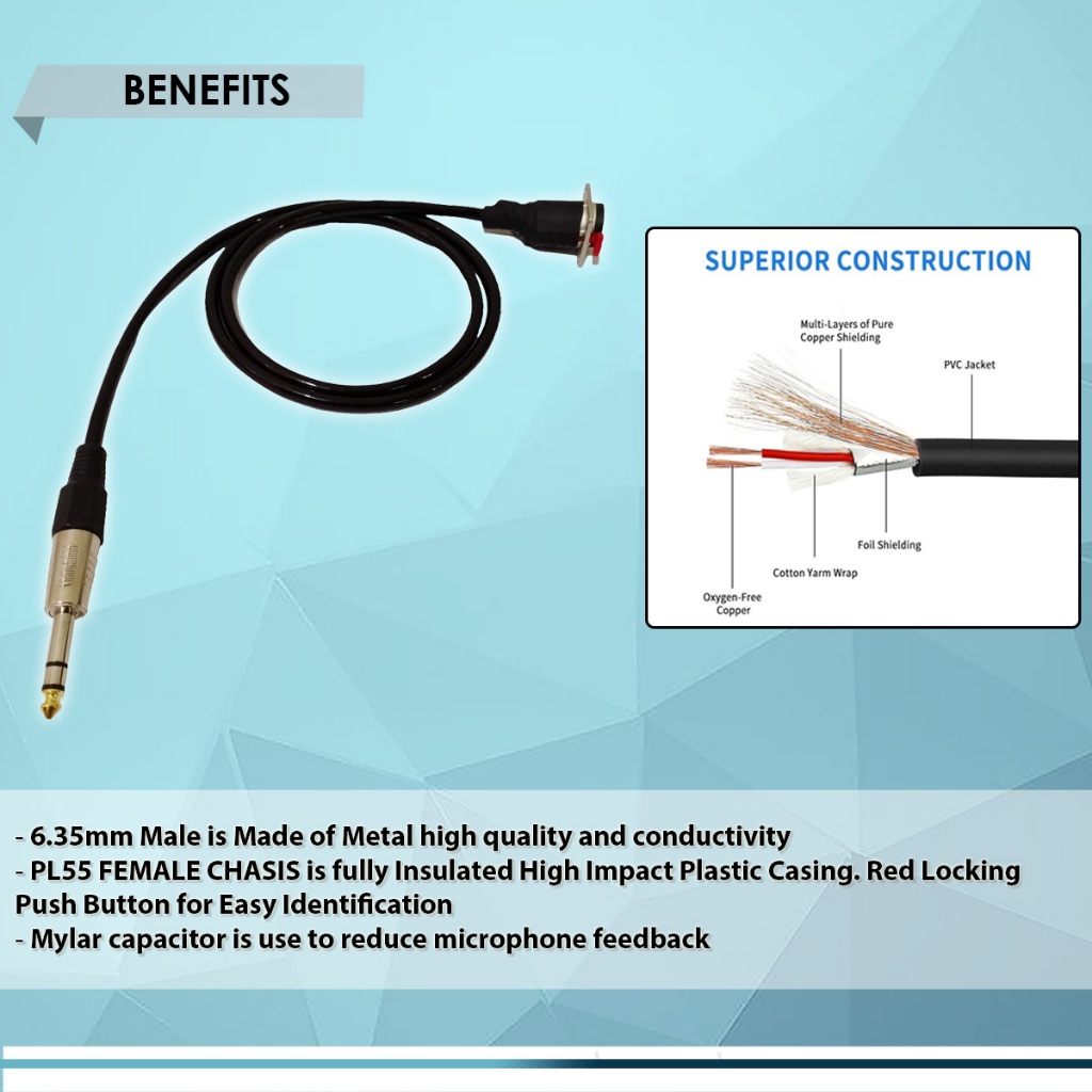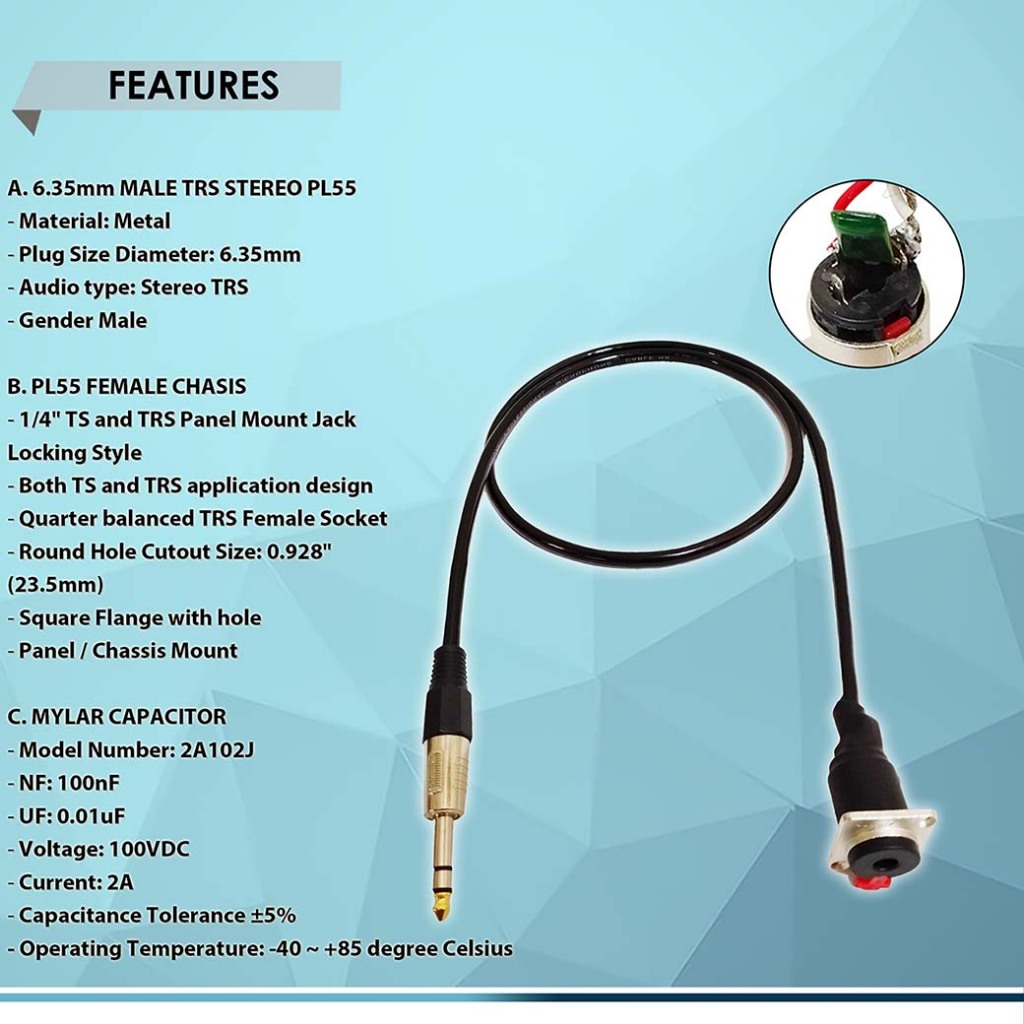 6.35mm (1/4inc) MALE TRS STEREO PL55 to PL55 FEMALE CHASIS with ANTI-FEEDBACK CAPACITOR