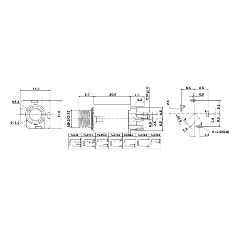 6.35mm Stereo Jack Socket Connector Mic Cable Plug Connector Audio Socket Mic