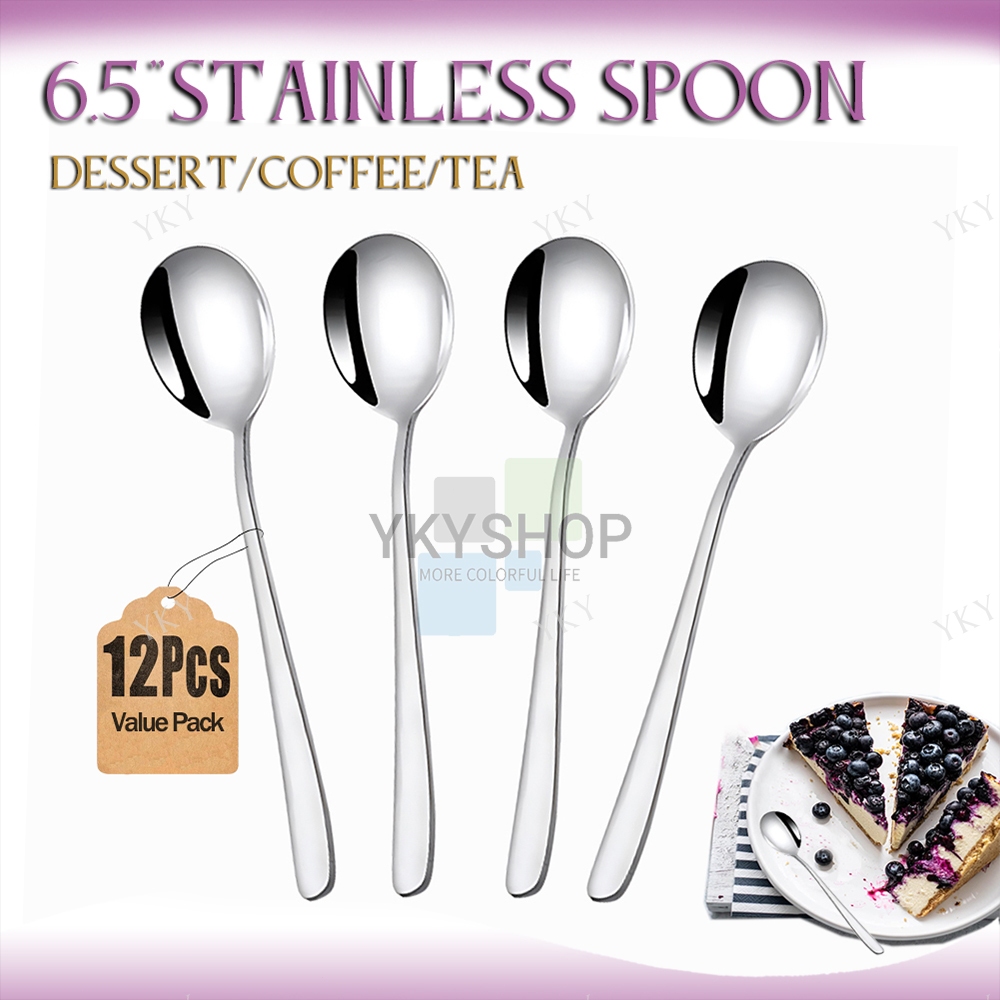 6.5" Dessert Spoon Stainless Steel Spoon Set for Dessert Tea Coffee Salad Silver Spoon Set 4/6/12pcs