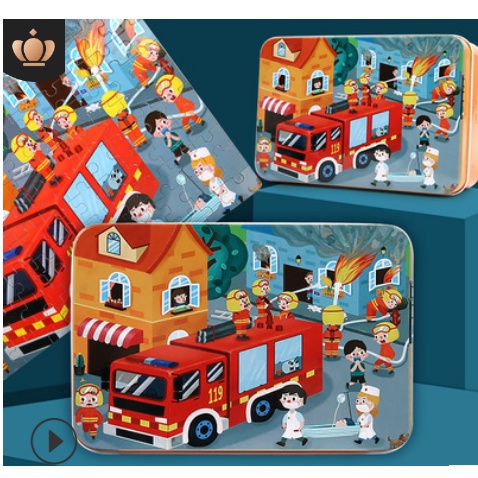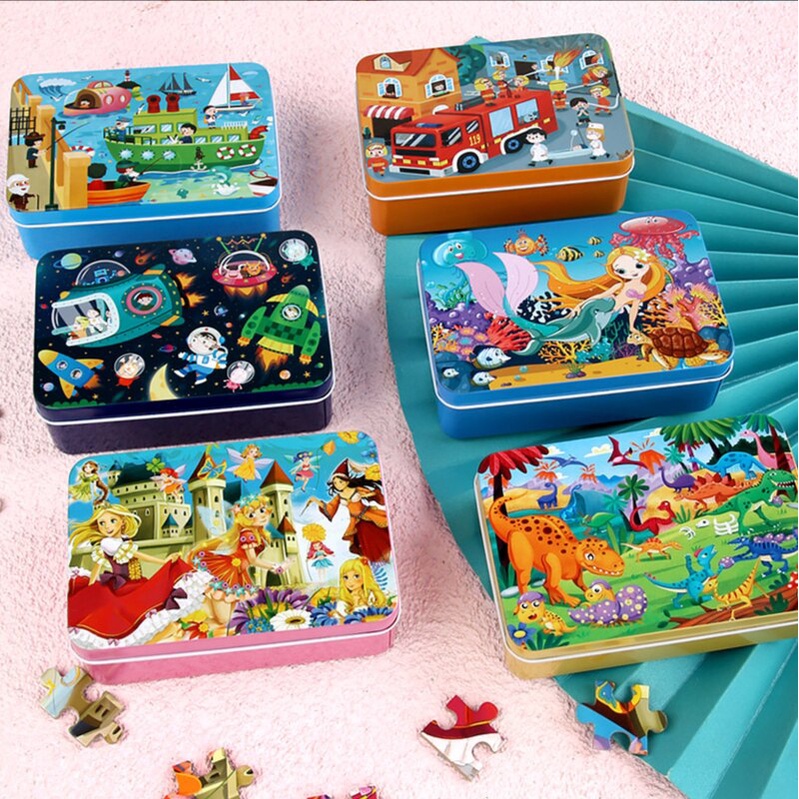 60/100/200 pieces wooden puzzle iron box boy / girl wooden puzzle creative gift 3D picture