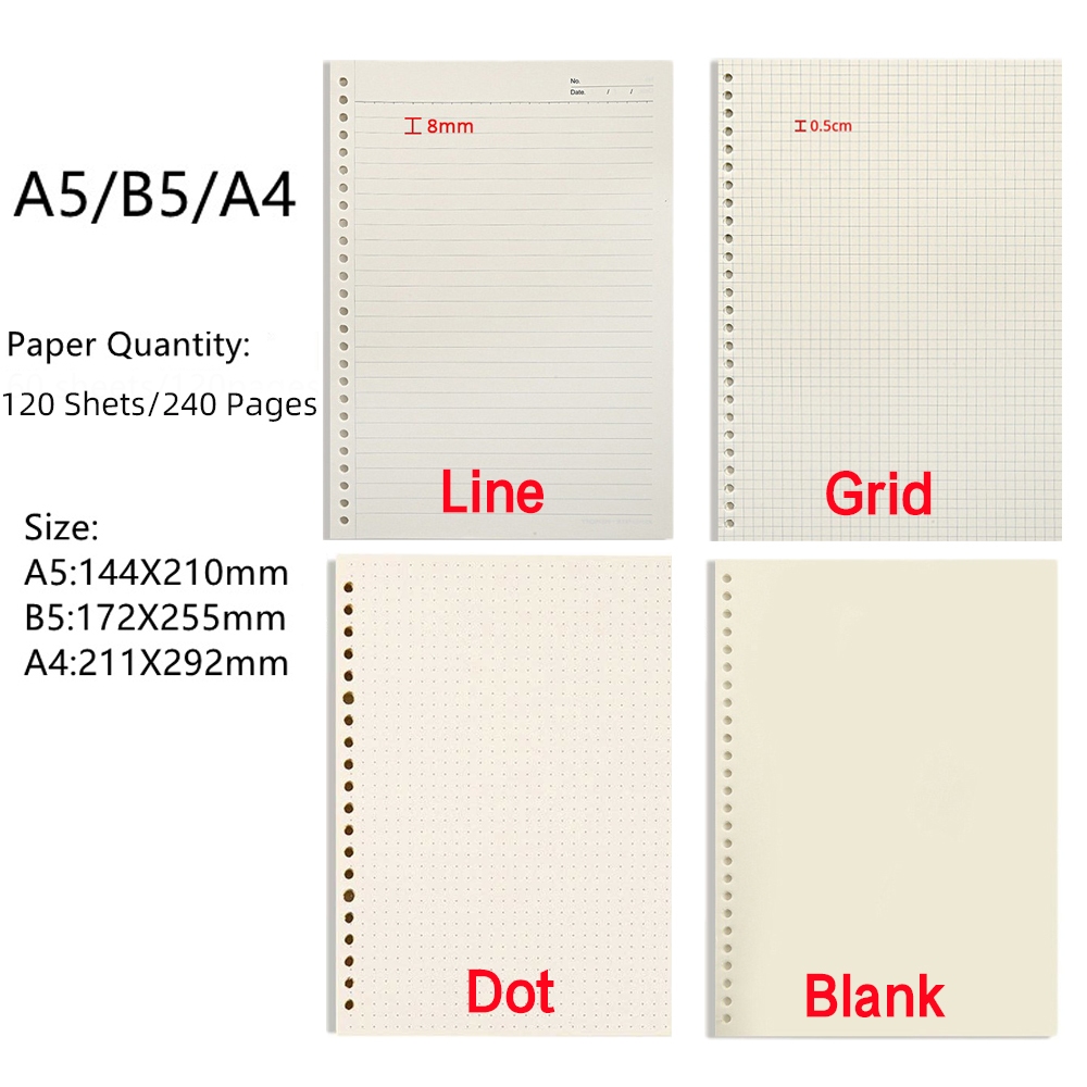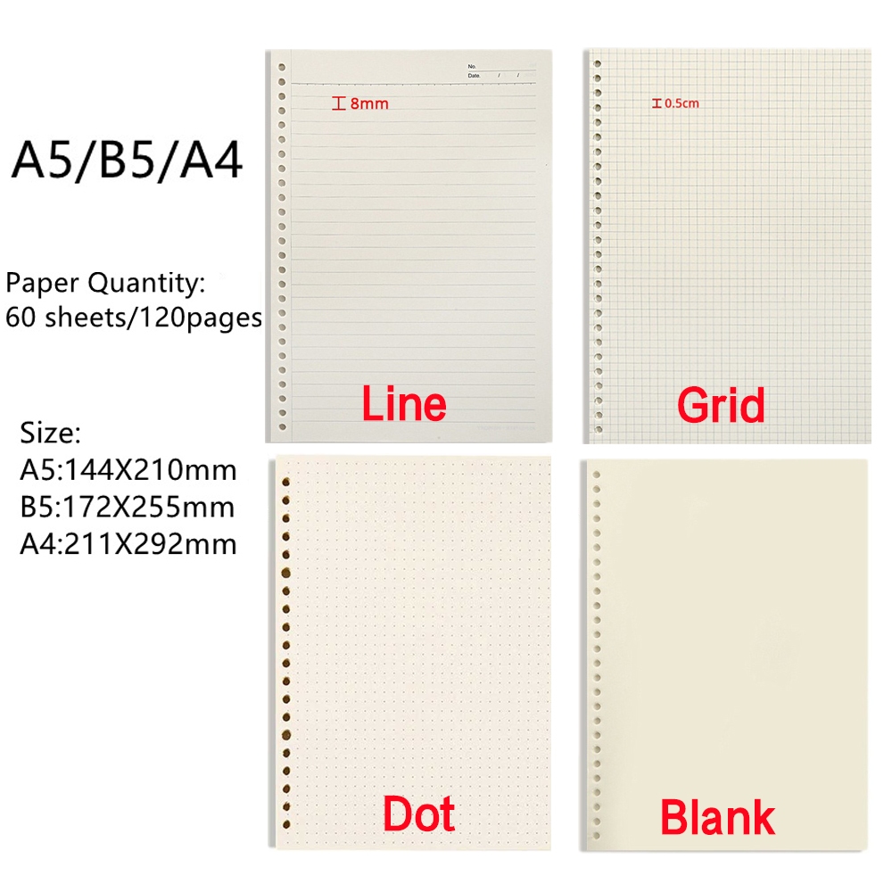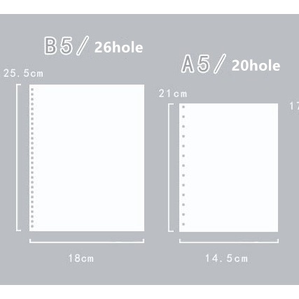 Loose Leaf A5/B5/A4 Binder Notebook Refillable Refill Papers 20/26/30 holes 60/120sheets