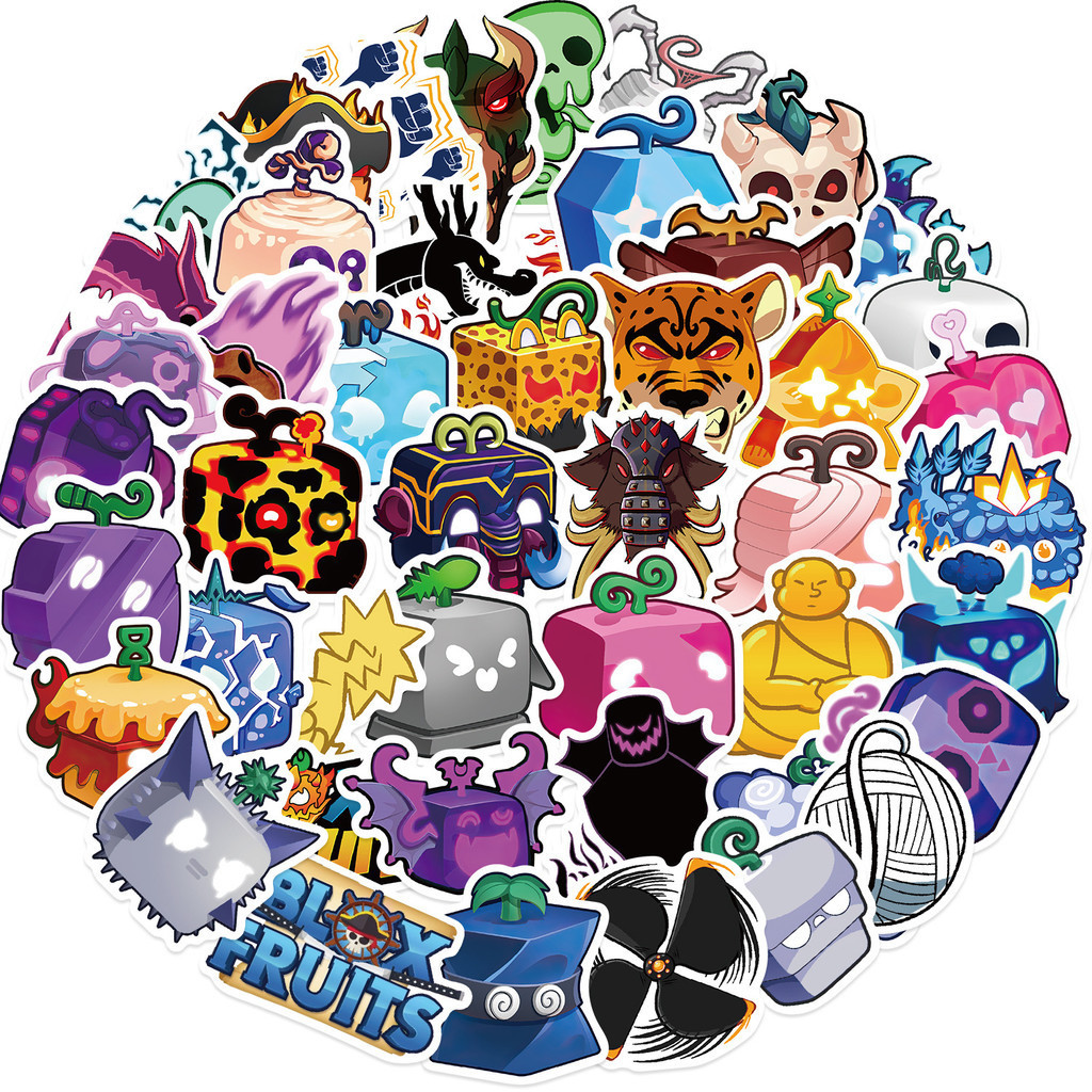 60/50pcs Blox Fruits Game Stickers Waterproof Graffiti Decals for Laptop, Luggage, Phone, Notebook
