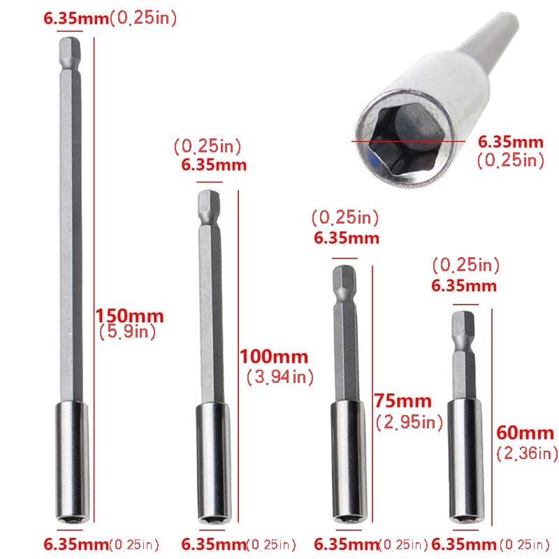60/75/100/150mm Hexagon Shank Extension Connecting Rod 1/4 Quick-change Hexagonal Shank Extension Rod Joint