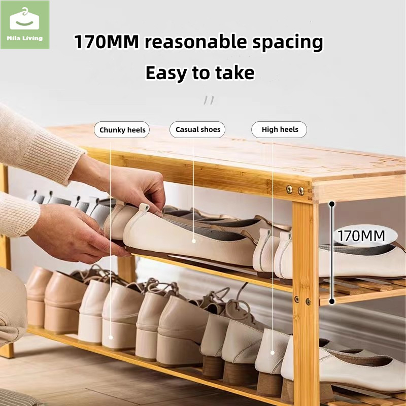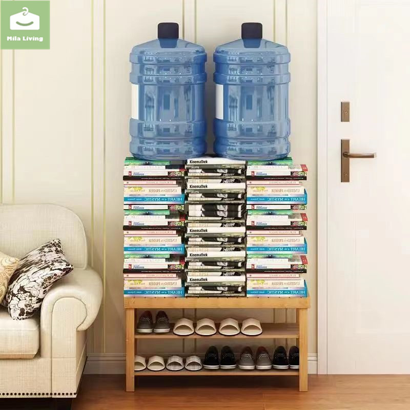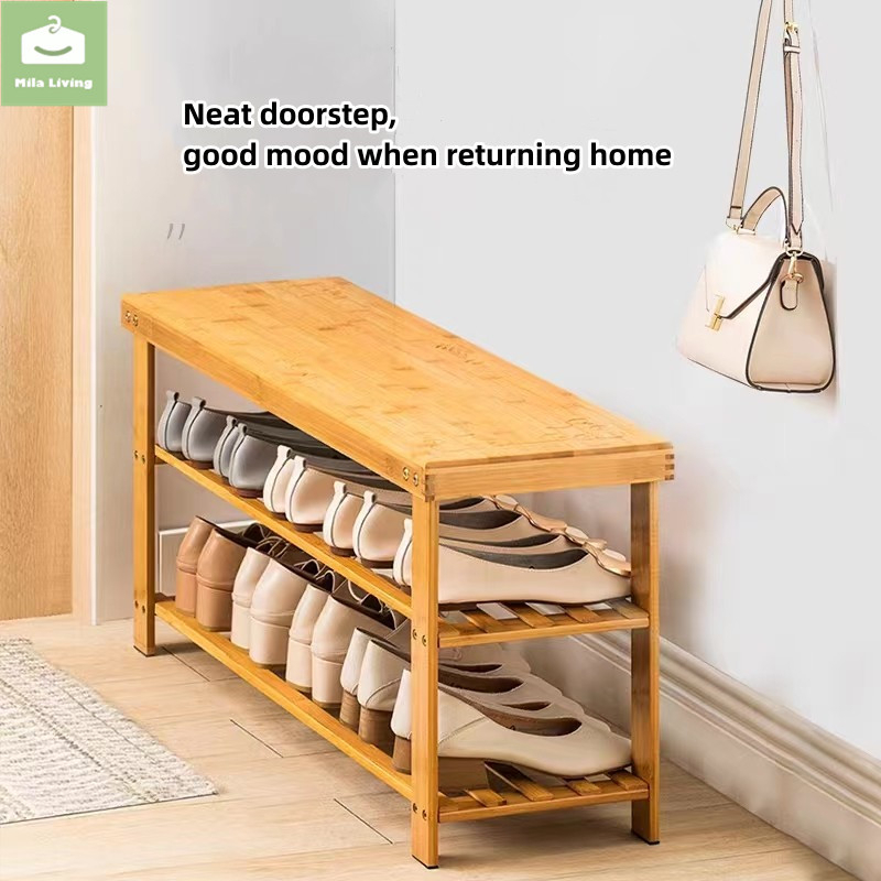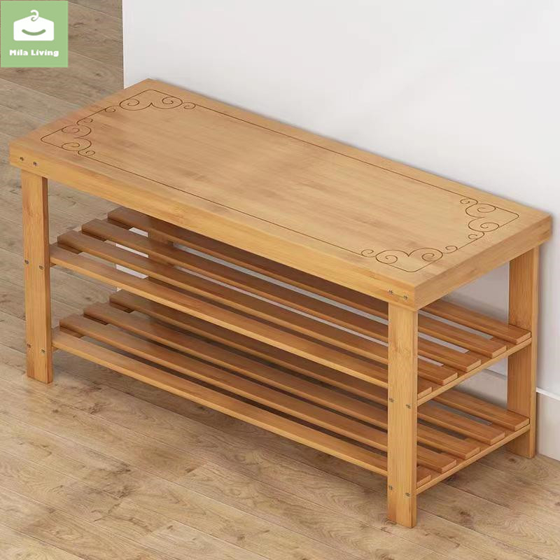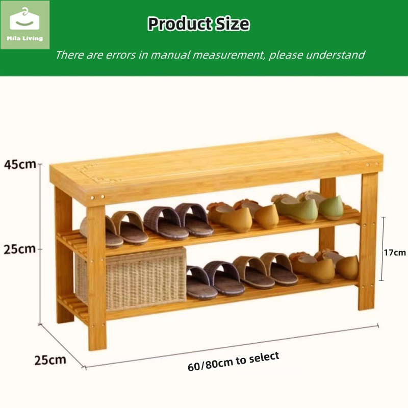 60/80CM 2Layer Bamboo Shoe Stool Cabinet Shoe Rack Stool Storage Modern Storage Stool Cushion Shoe