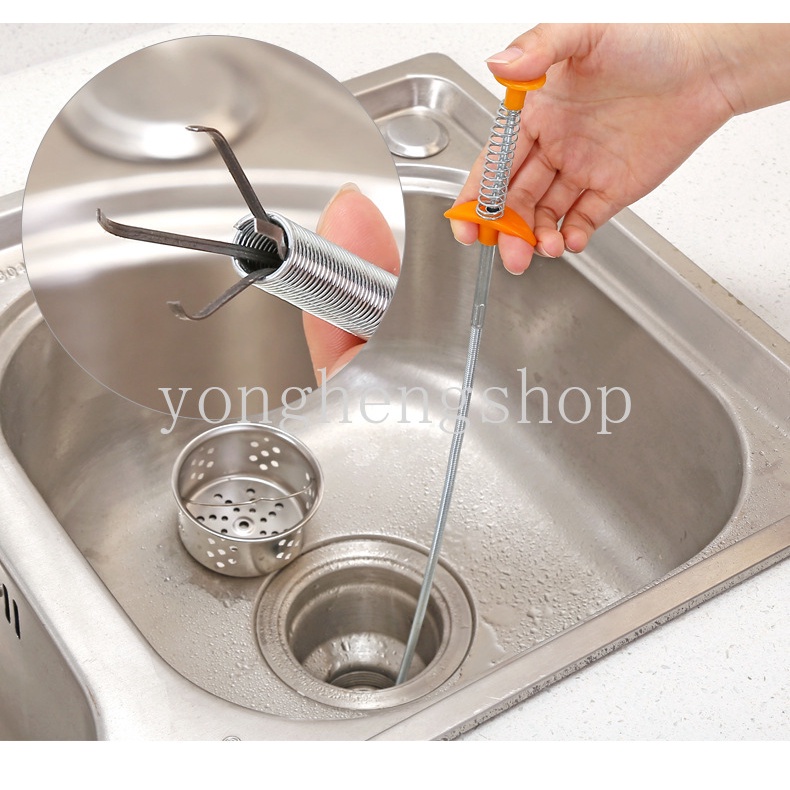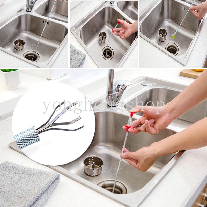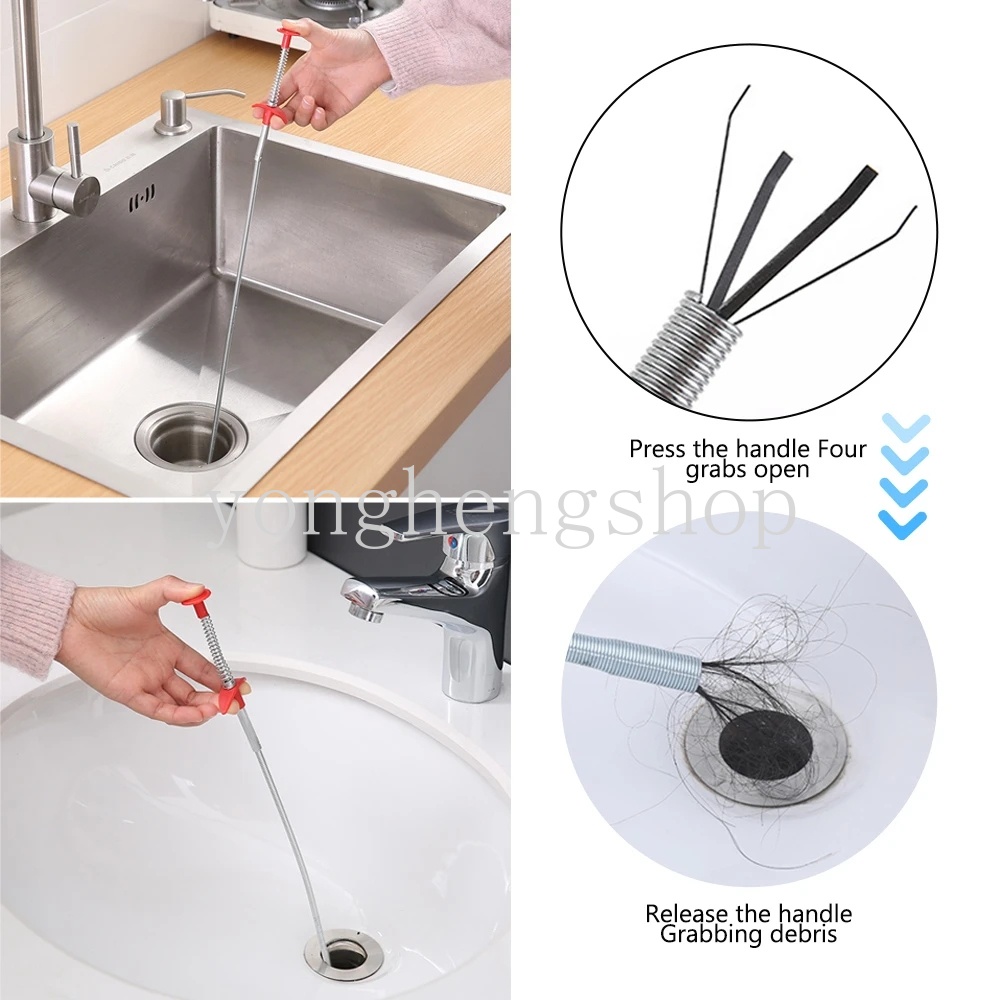 60/85cm Spring Tube Flexible Sink Sewage Extractor Claw Pick Up Pipeline Dredge Tool Bendable Sewer Unclogging Tool Debris Garbage Clamp Hair Grabber Kitchen Cleaning Gadgets