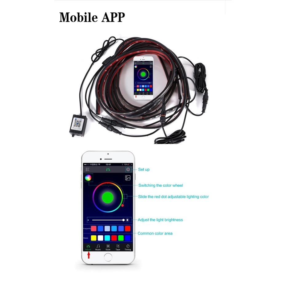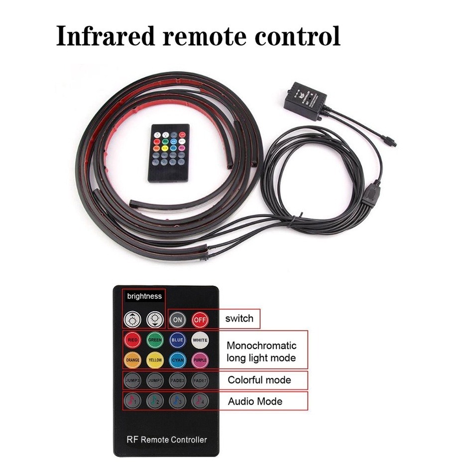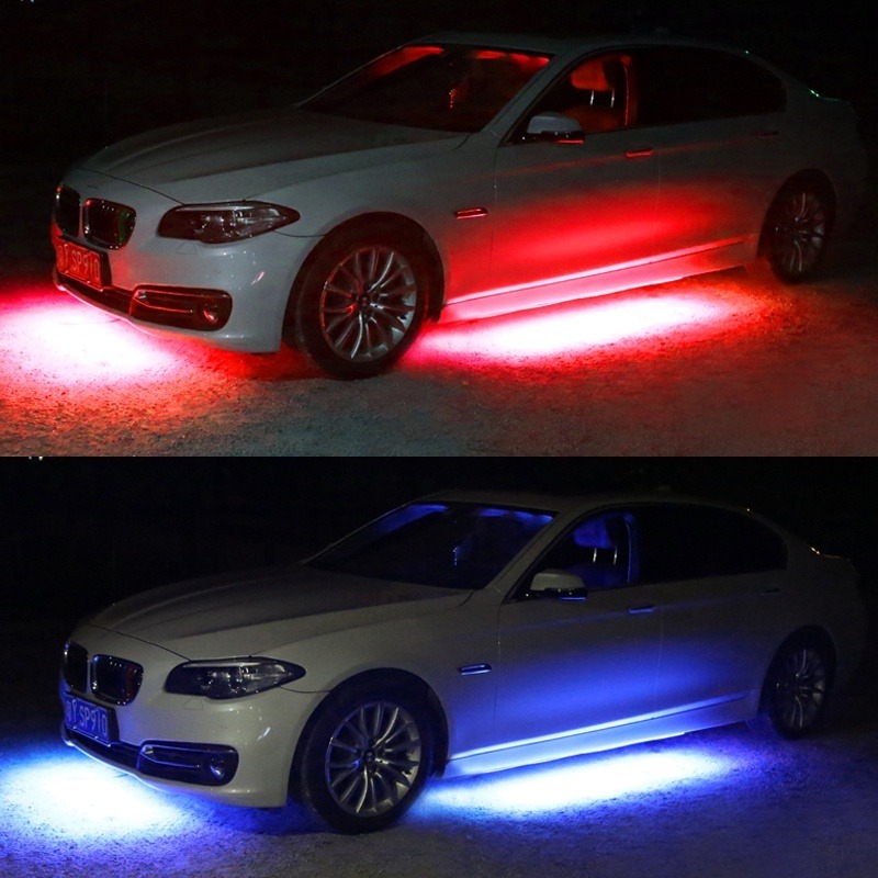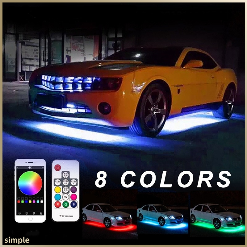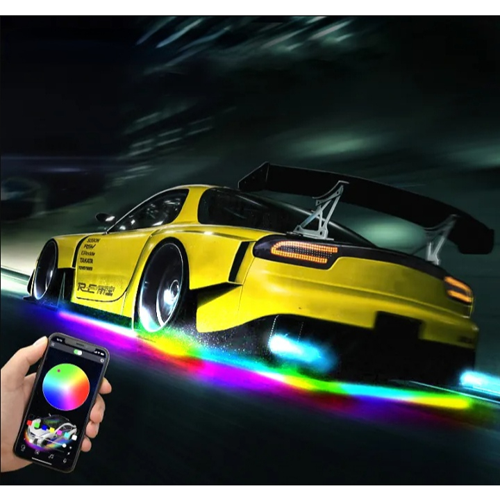 60-90 /90-120 RGB LED Under Car Tube Strip Underbody Glow Neon Light Kit Wireless Control Multicolor