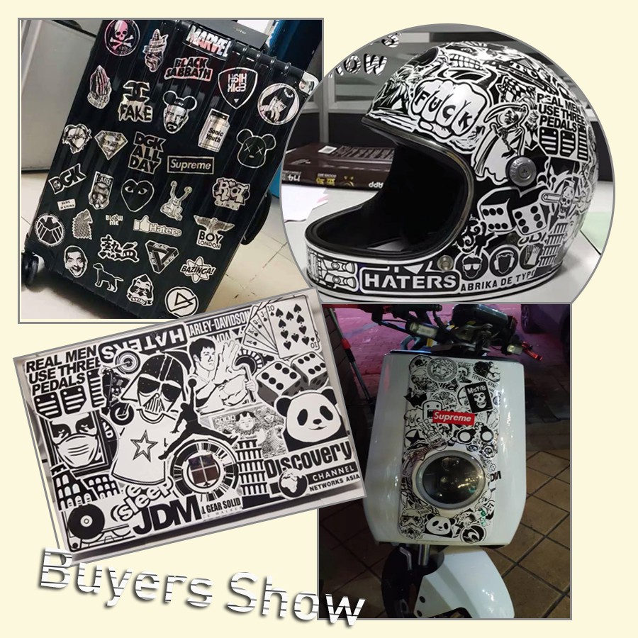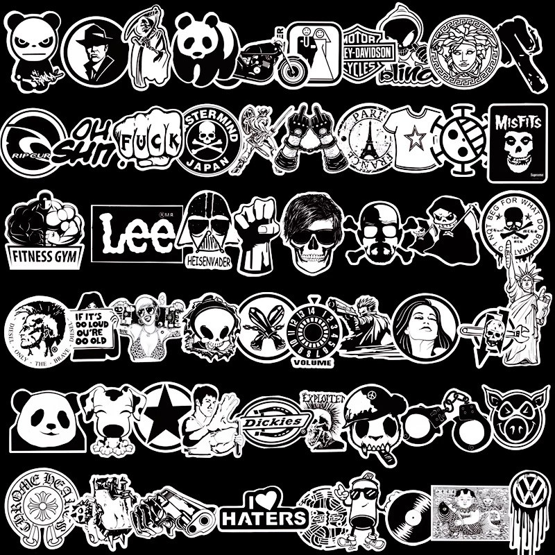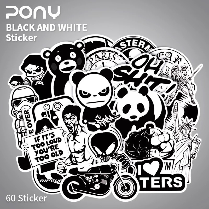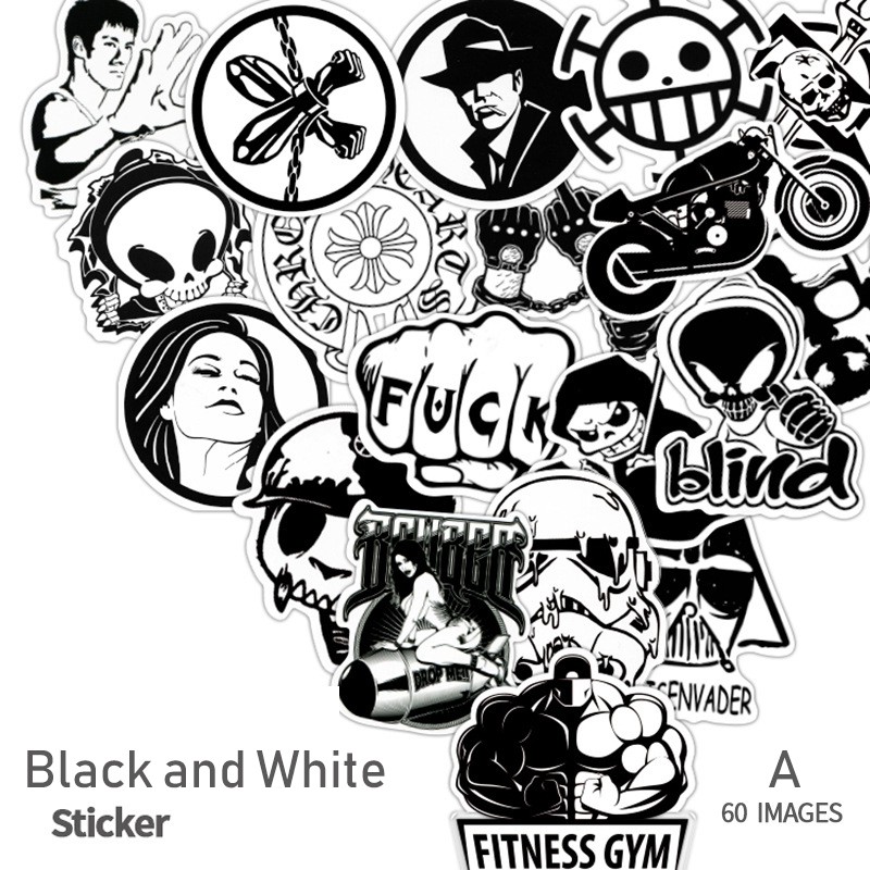 60 pcs Random Black and White Sticker Graffiti Punk JDM Cool Stickers for Car Laptop Skateboard Suitcase Bike Helme