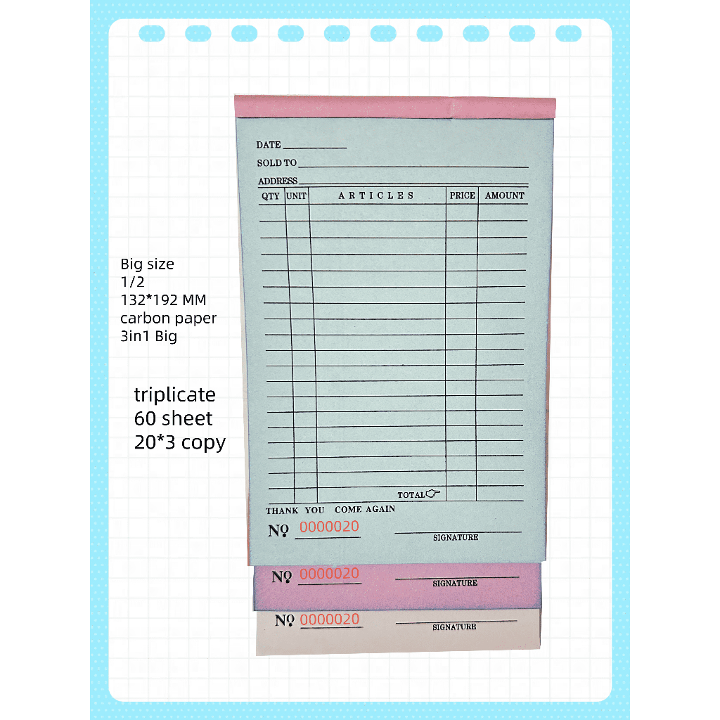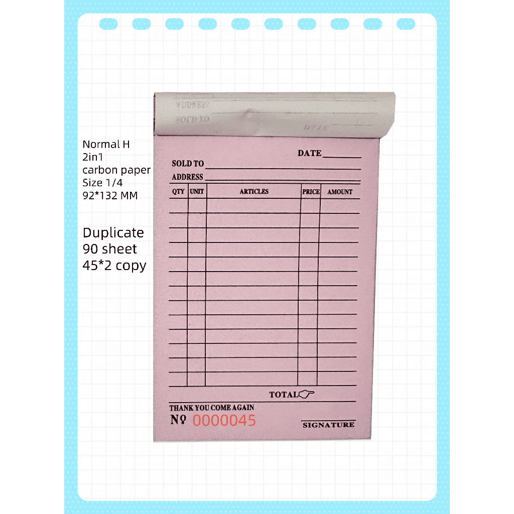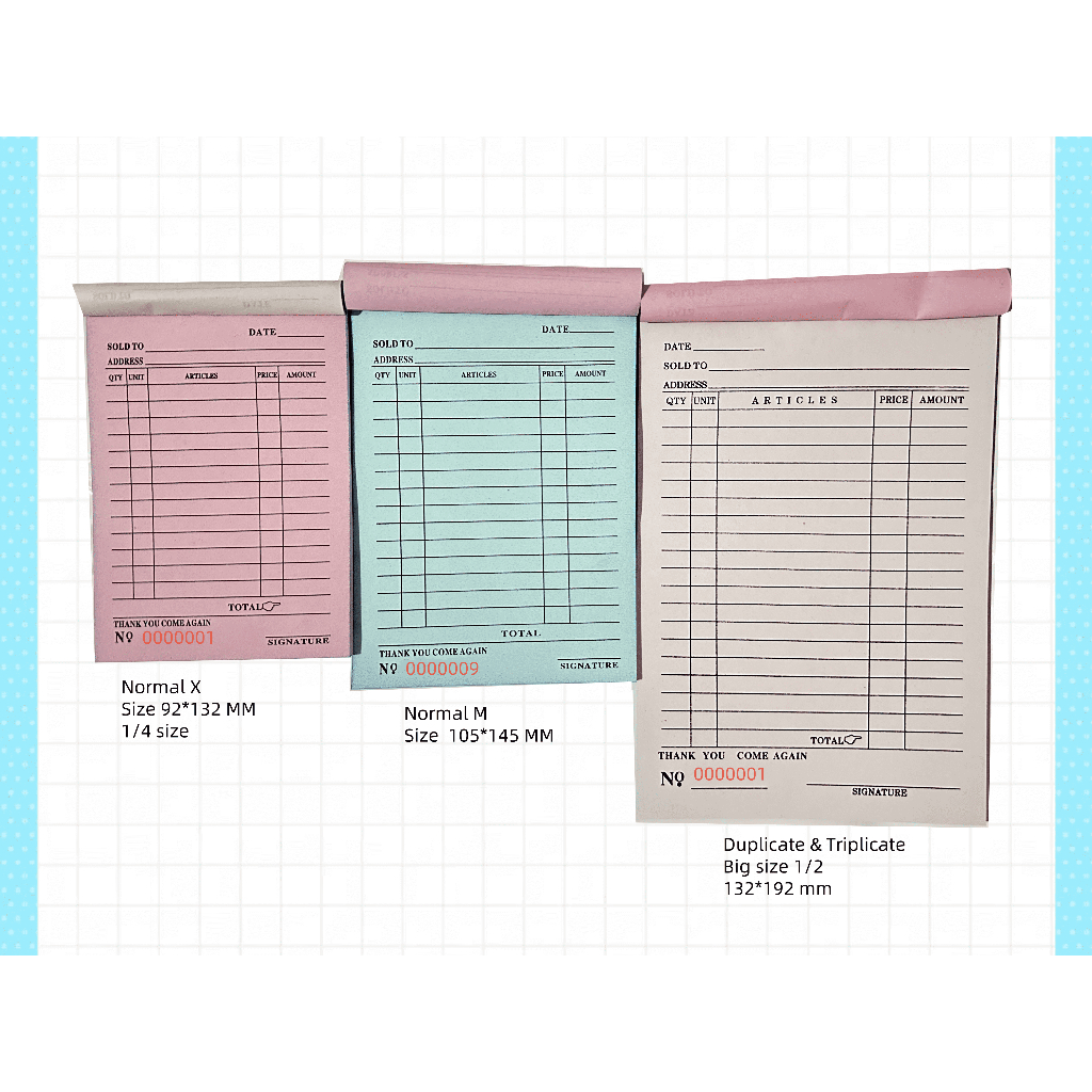 4 type 60 sheet Sold to Receipt Resibo Normal and thick Low Price Size 1/4 9*13CM and 1/2 size 13*19