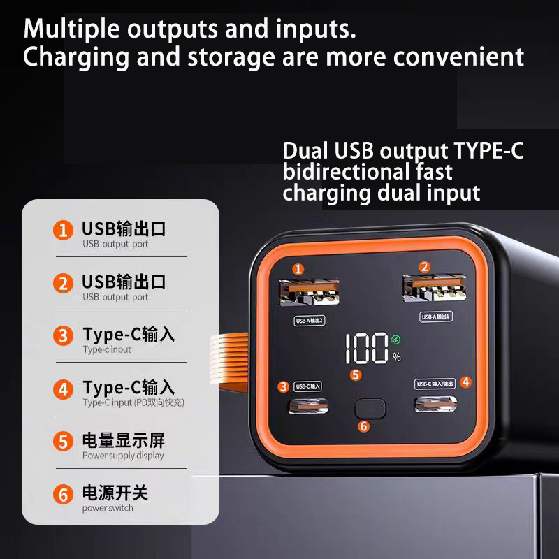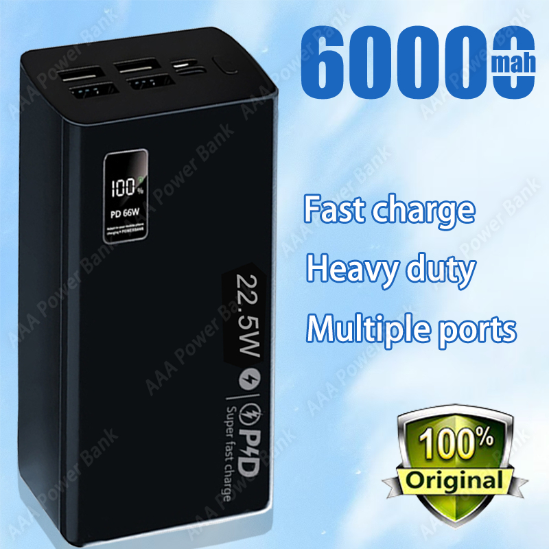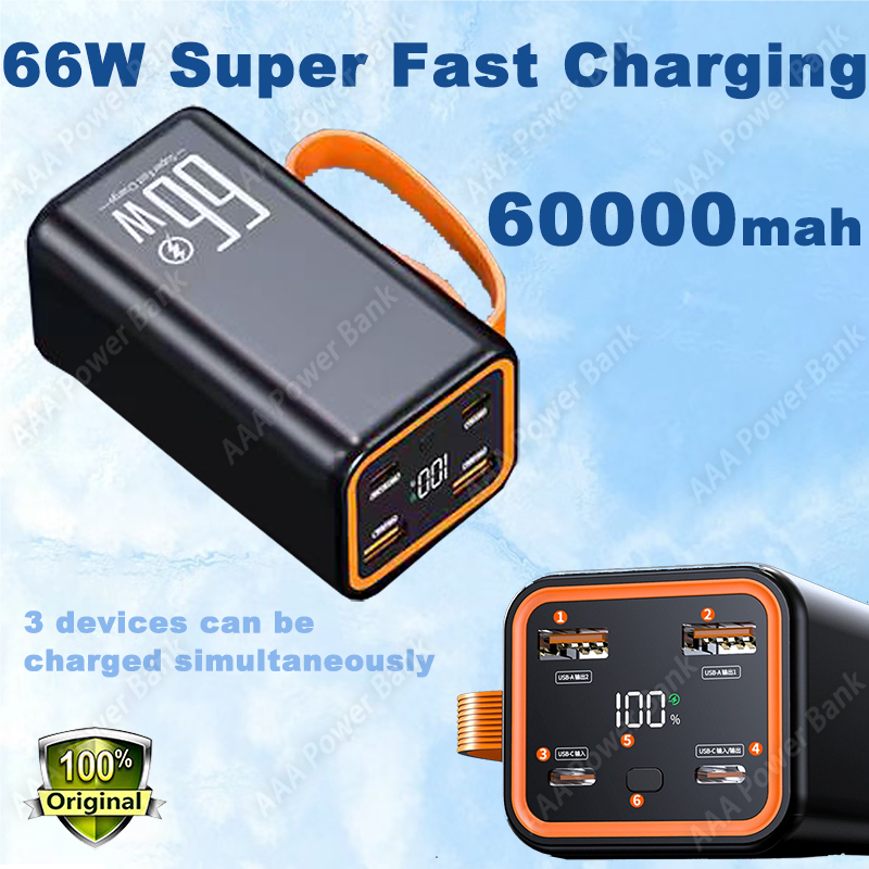 60000Mah powerbank High Capacity 66W Super Fast Charge Power bank small volume 4 ports Portable