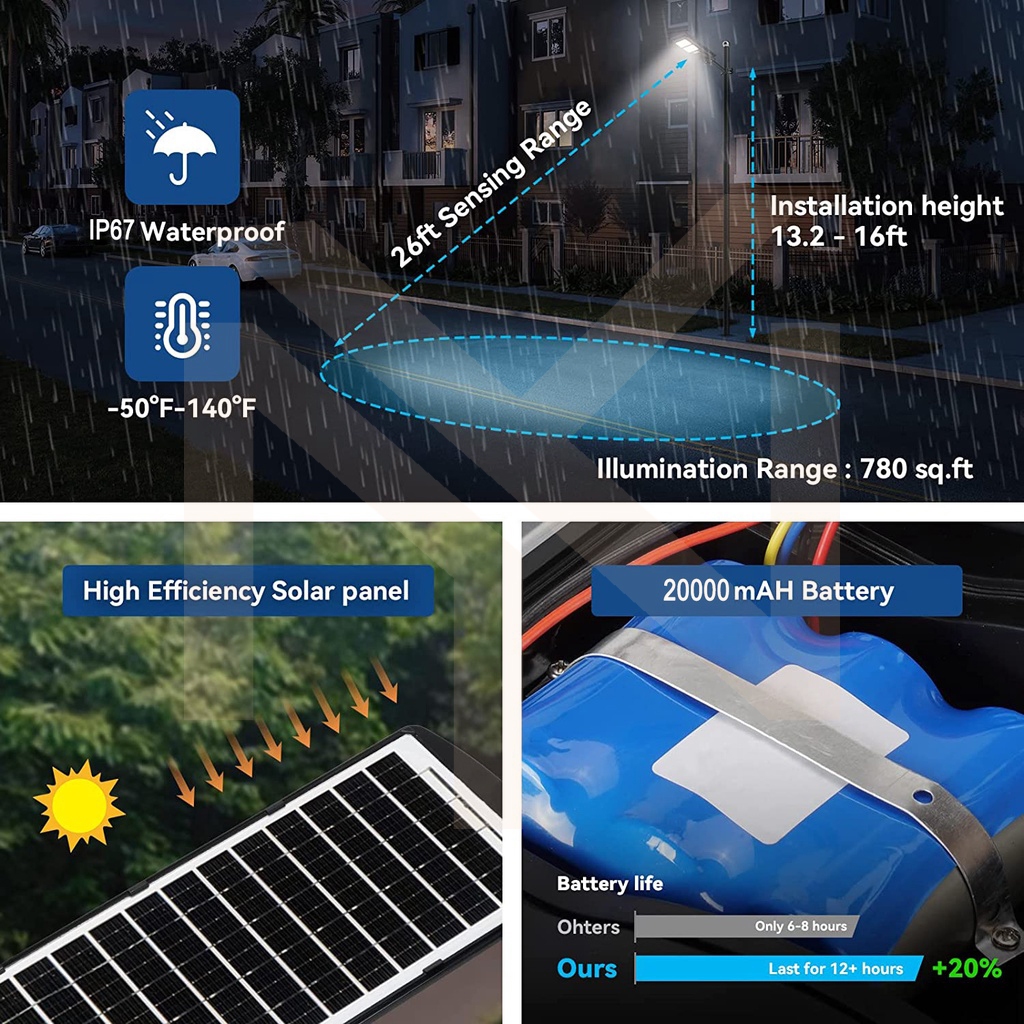 6000W solar street light IPX8 solar light outdoor waterproof solar light outdoor solar sense light