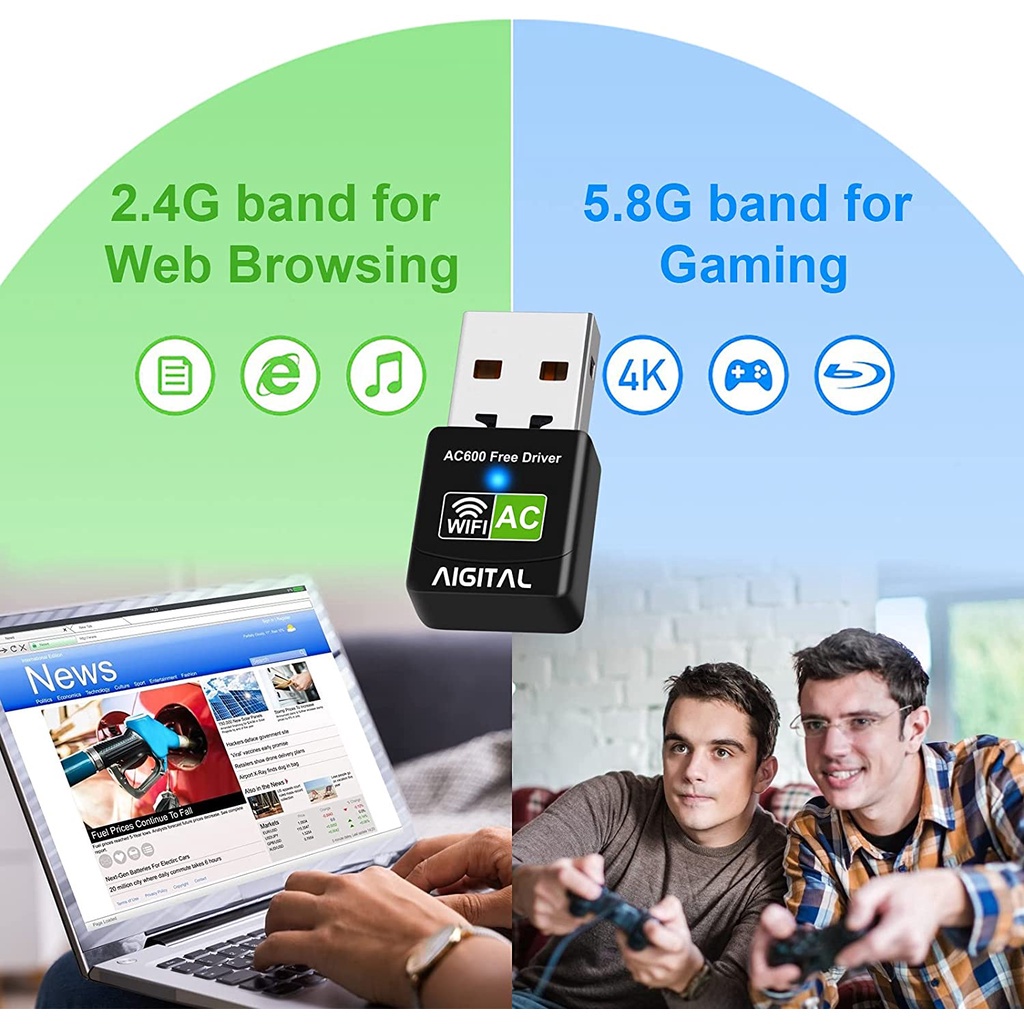 600M/300M/150M Wireless WiFi Adapter, wifi dongle 600M USB WiFi Adapter Receiver 2.4G/5.8G