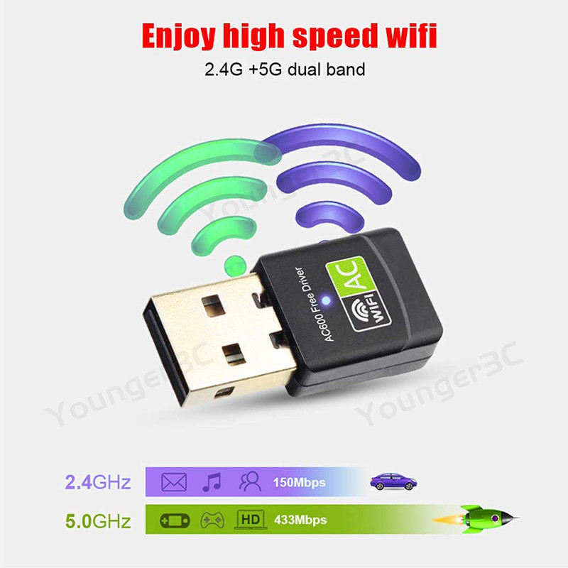 600Mbps Driver Free USB Wifi Dongle Bluetooth,2.4G/5GHz WiFi Receiver,Wireless WiFi Bluetooth Adapter,Desktop Computer WiFi Receiver,USB Wireless Network Card