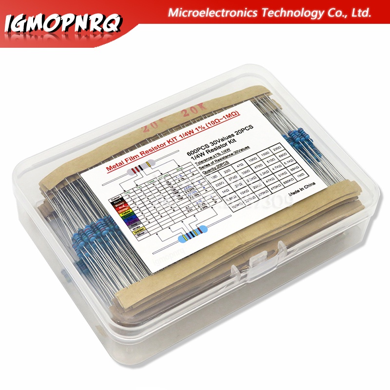 600PCS 30Values* 20PCS 1% 1/4 W resistor pack set diy Metal Film Resistor kit use colored ring resistance (10 ohms~1 M ohm)