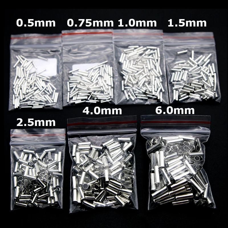 600Pcs Tin-coated Copper Uninsulated Crimp Terminal 0.5mm2-6.0mm2 Bootlace Ferrules Cord End Electrical Wire Cable Connector