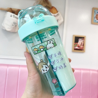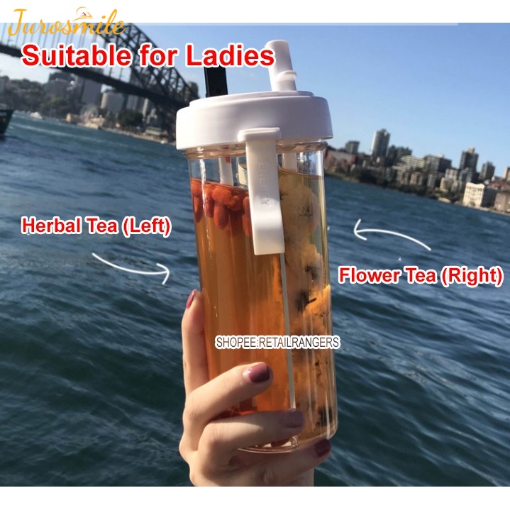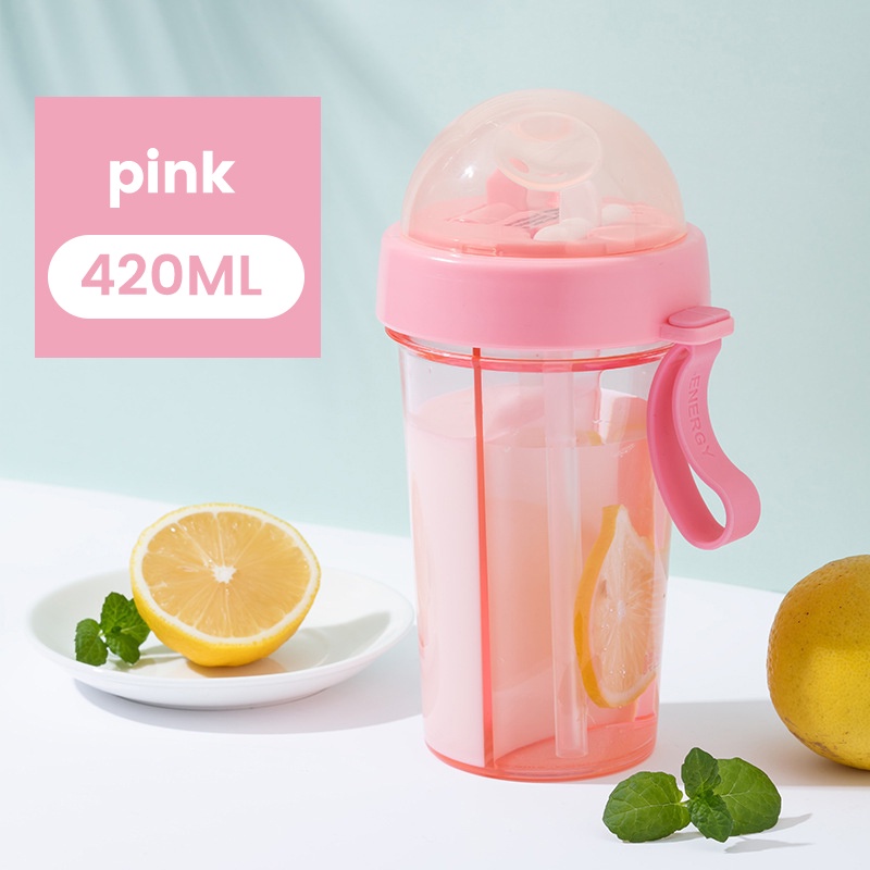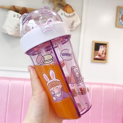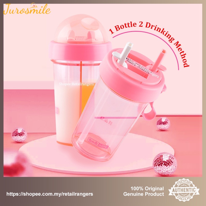 600ml Portable Dual Straw Aquaflask Separate Drink Water Beverage Bottle Couples Gift Double Straw Two Flavor Dual-use Sport Drink Bottle Camping Outdoor
