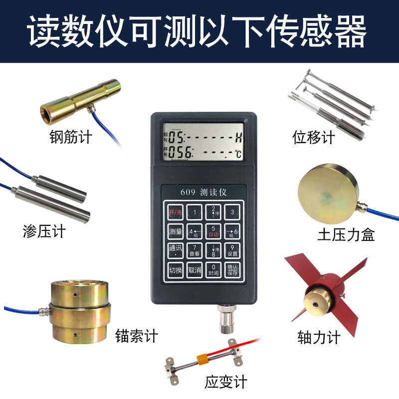 609 Frequency Vibration String Reading Instrument Measuring Rebar Axial Force Meter Soil Box
