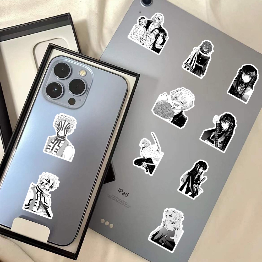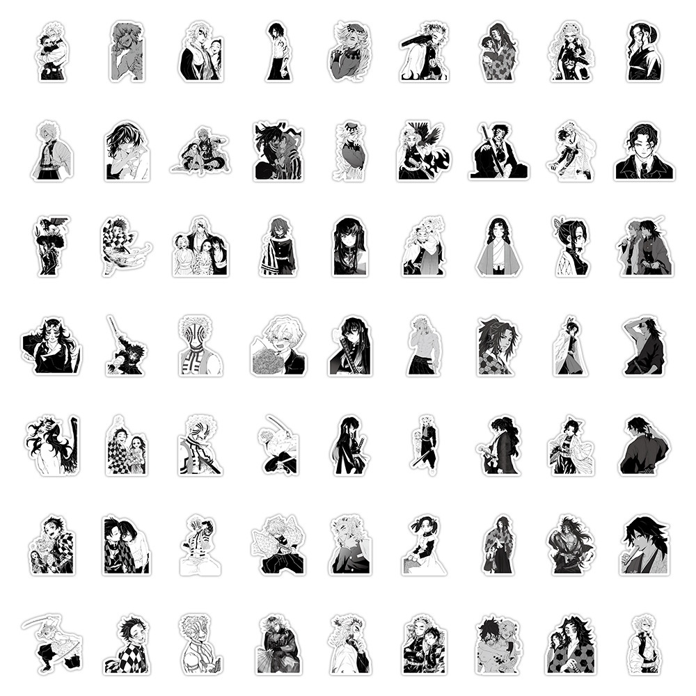 60PCS Anime Black and White Demon Slayer Kimetsu No Yaiba Graffiti Stickers For Helmet Bicycle Hand Account Pencil Case Decals LanLanStickersWorld