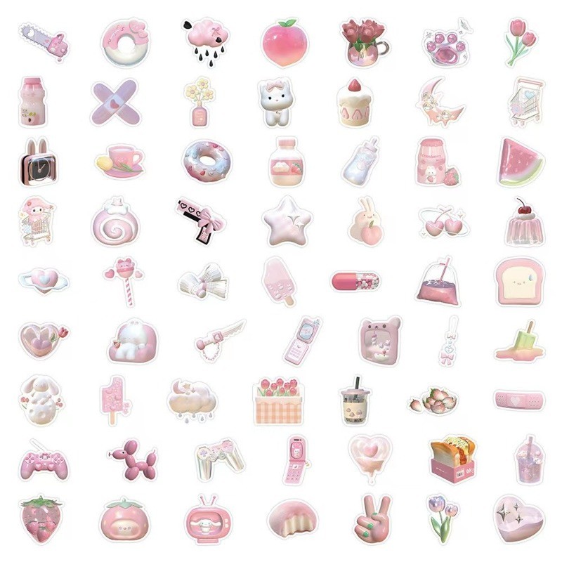 60PCS Cute 3D Pink Stickers Laptop\Phone Decorative Stationery Cartoon Waterproof Stickers Pack