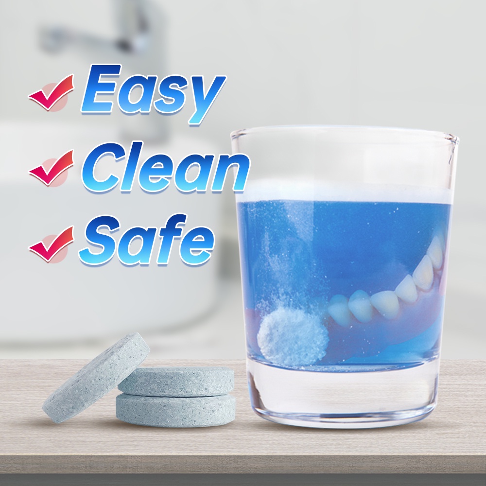 60Pcs Denture Cleaning Tablets Wash Denture Cleaners False Teeth Tooth Effervescent Disinfection Sterilize Stain Remover Plaque Antibacteria Oral Care