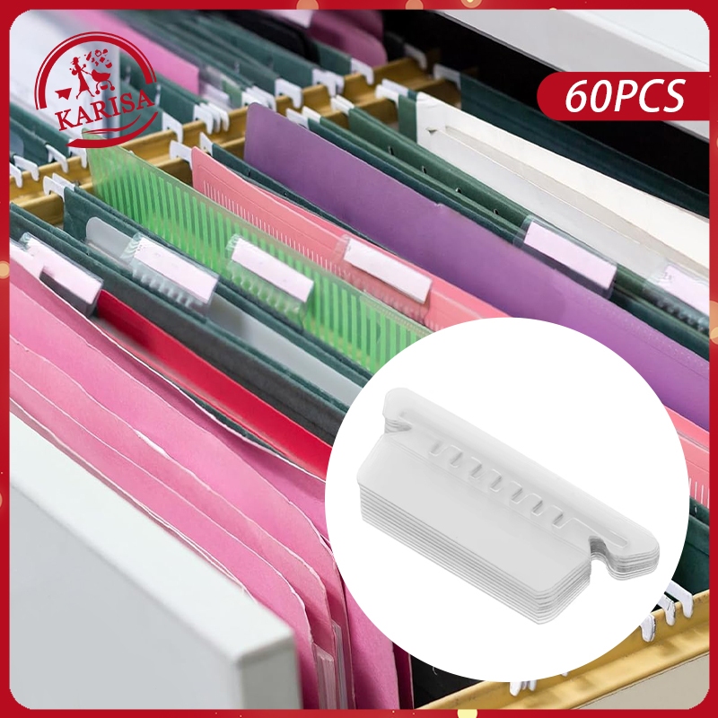 60Pcs Hanging Folder Tabs Quick Identification Index File Inserts Transparent PVC Label Clips