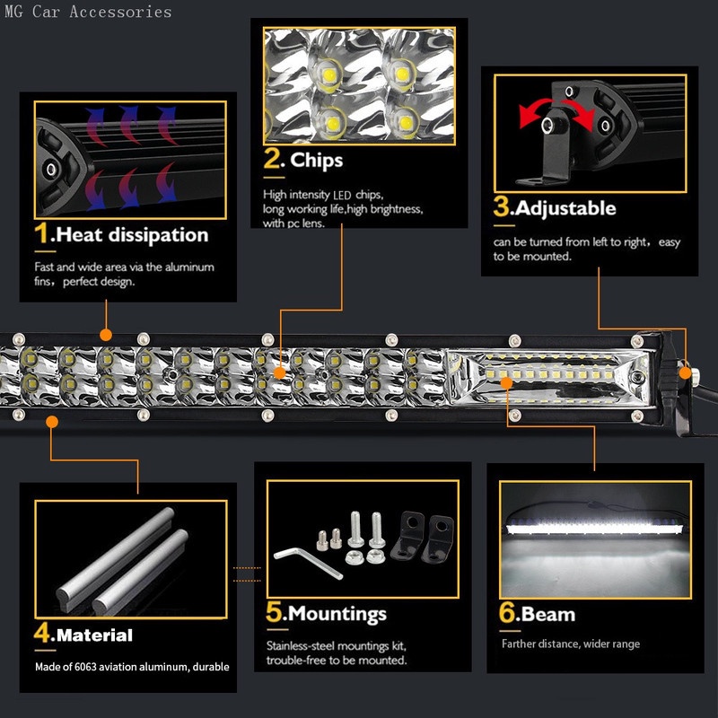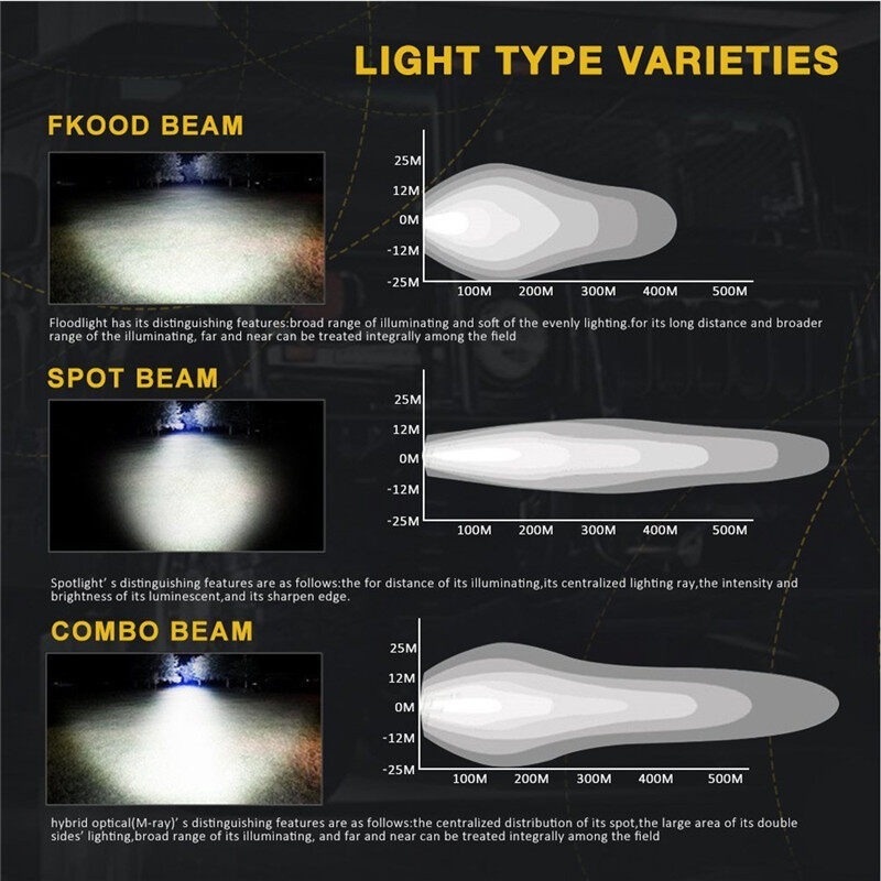 60W 180w 300w Adjustable Car LED Work Light Bar Driving Lamp Combo for ATV Truck Offroad IP68 High Power LED