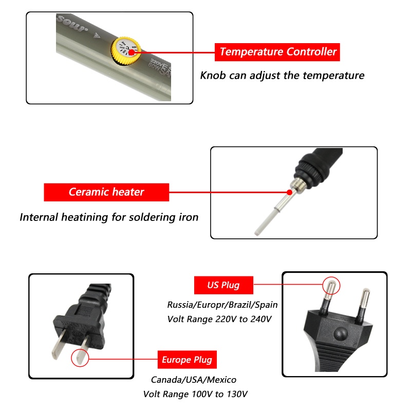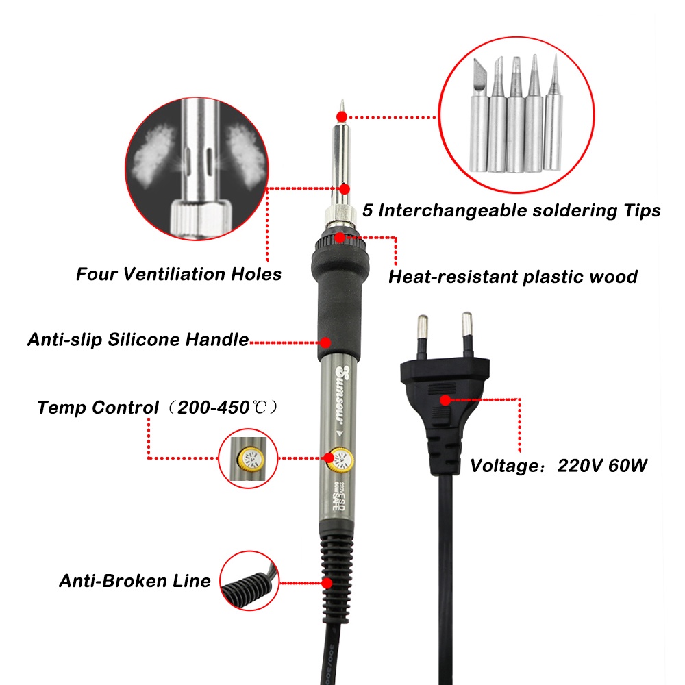 60W Adjustable Temperature Electric Heat Pen Soldering Iron 220V EU Plug Soldering Rework Station Tools